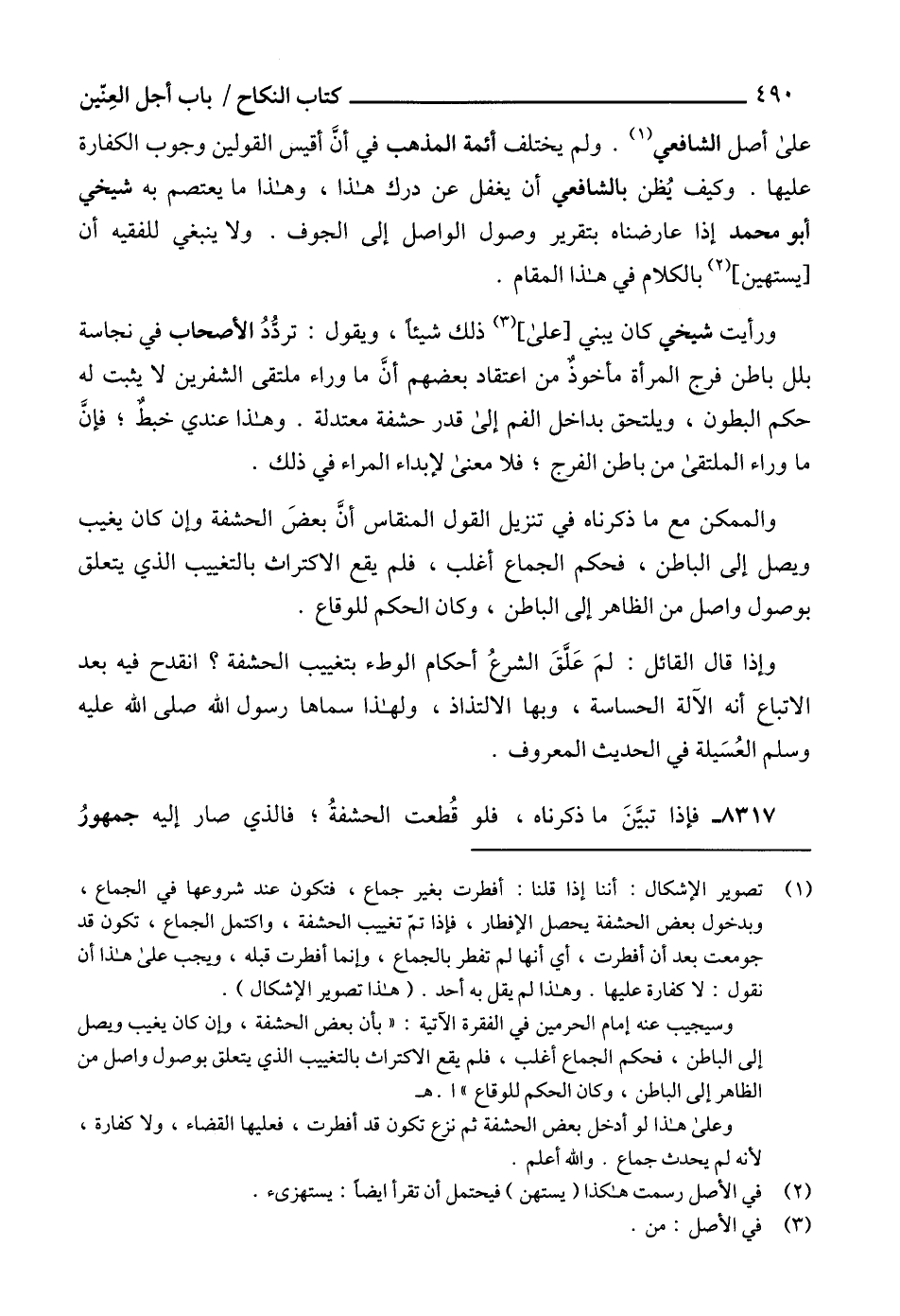ورأيت شيخي كان يبني [على] (3) ذلك شيئاً، ويقول: تردُّدُ الأصحاب في نجاسة بلل باطن فرج المرأة مأخوذٌ من اعتقاد بعضهم أنَّ ما وراء ملتقى الشفرين لا يثبت له حكم البطون، ويلتحق بداخل الفم إلى قدر حشفة معتدلة. وهذا عندي خبطٌ؛ فإنَّ ما وراء الملتقى من باطن الفرج؛ فلا معنى لإبداء المراء في ذلك.