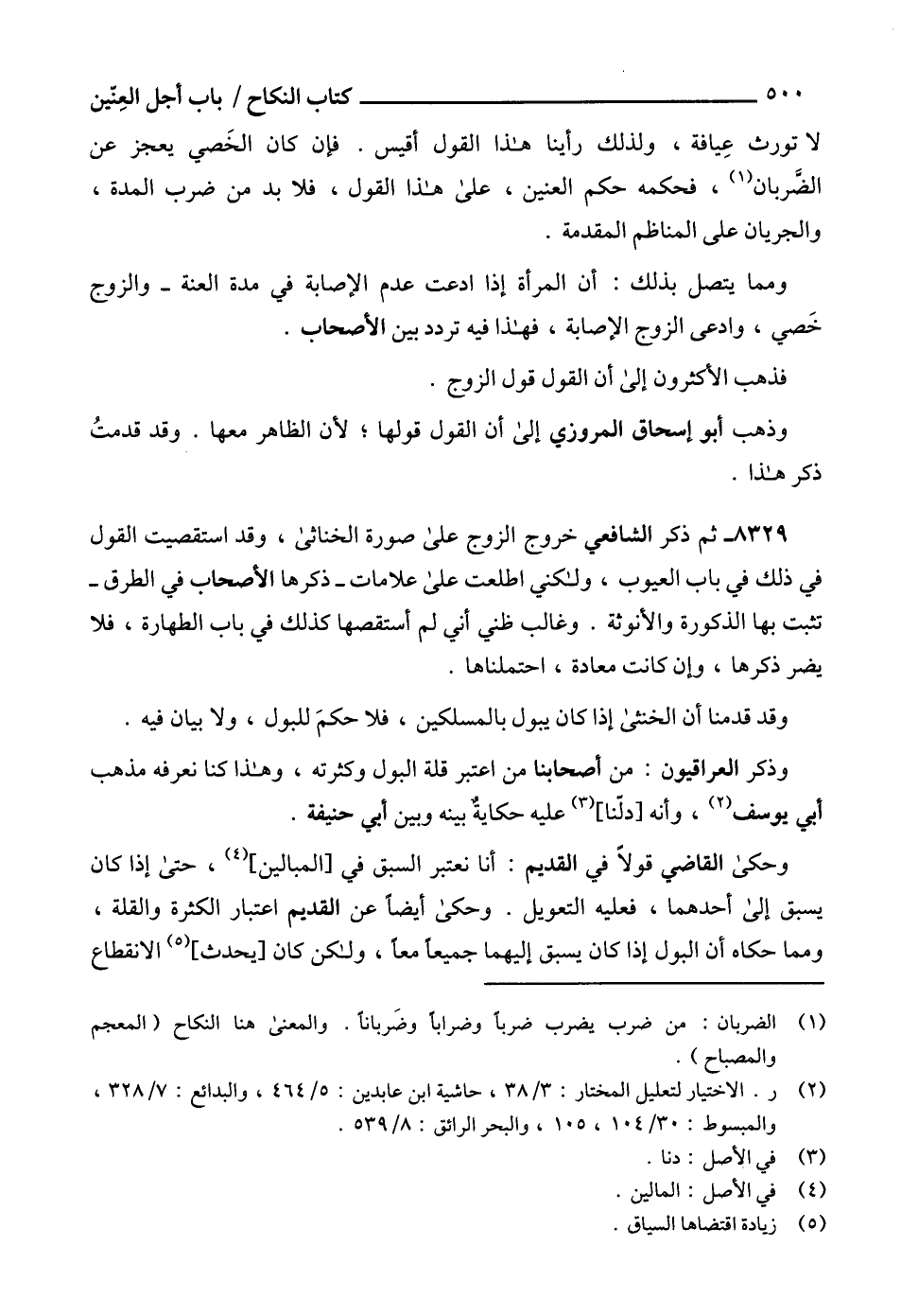 وقد قدمنا أن الخنثى إذا كان يبول بالمسلكين، فلا حكمَ للبول، ولا بيان فيه.