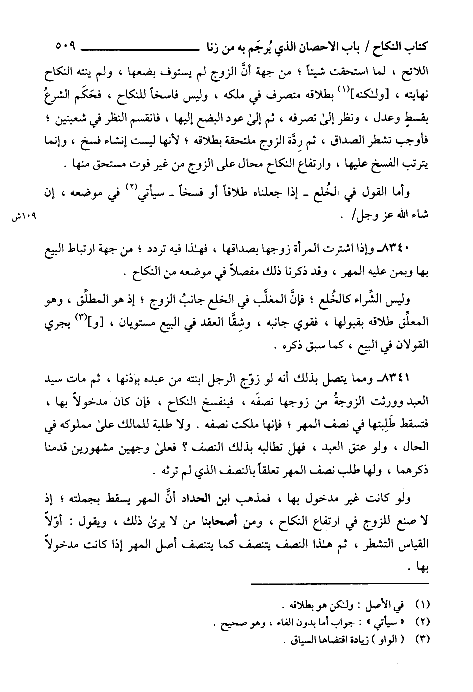 8340 - وإذا اشترت المرأة زوجها بصداقها، فهذا فيه تردد؛ من جهة ارتباط البيع بها وبمن عليه المهر، وقد ذكرنا ذلك مفصلاً في موضعه من النكاح.