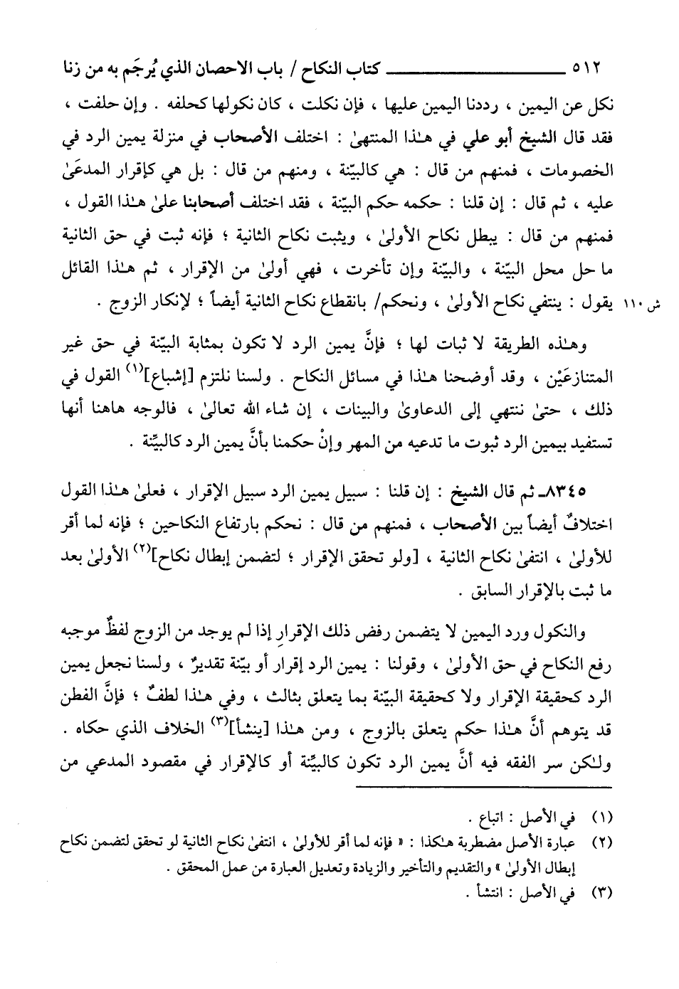 8345 - ثم قال الشيخ: إن قلنا: سبيل يمين الرد سبيل الإقرار، فعلى هذا القول اختلافٌ أيضاً بين الأصحاب، فمنهم من قال: نحكم بارتفاع النكاحين؛ فإنه لما أقر للأولى، انتفى نكاح الثانية، [ولو تحقق الإقرار؛ لتضمن إبطال نكاح] (2) الأولى بعد ما ثبت بالإقرار السابق.