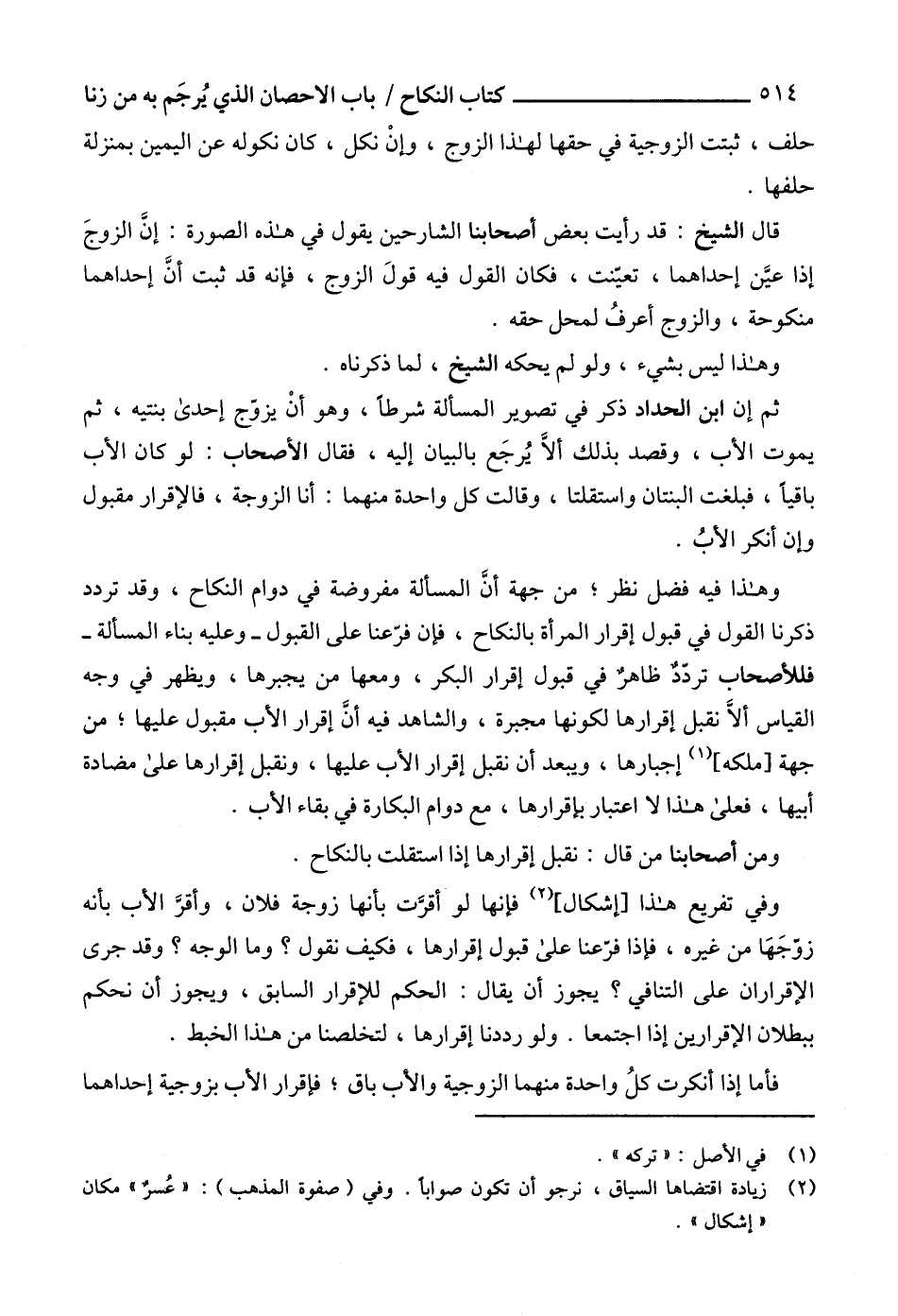 (2) زيادة اقتضاها السياق، نرجو أن تكون صواباً. وفي (صفوة المذهب): "عُسرٌ" مكان "إشكال".