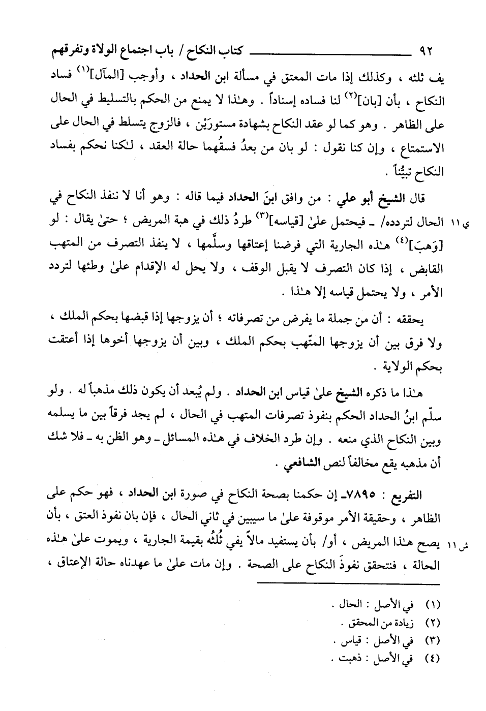 هذا ما ذكره الشيخ على قياس ابن الحداد. ولم يُبعد أن يكون ذلك مذهباً له. ولو سلّم ابنُ الحداد الحكم بنفوذ تصرفات المتهب في الحال، لم يجد فرقاً بين ما يسلمه وبين النكاح الذي منعه. وإن طرد الخلاف في هذه المسائل -وهو الظن به- فلا شك أن مذهبه يقع مخالفاً لنص الشافعي.