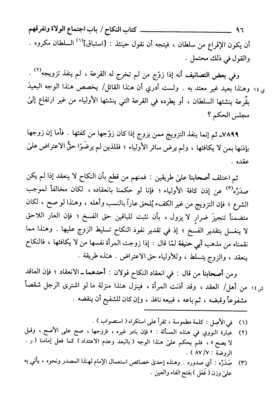 7899 - ثم إنما ينفذ التزويج ممن يزوج إذا كان زوّجها من كفئها. فأما إن زوجها بإذنها بمن لا يكافئها، ولم يرض سائر الأولياء؛ فللذين لم يرضَوْا حقُّ الاعتراض على عقده.