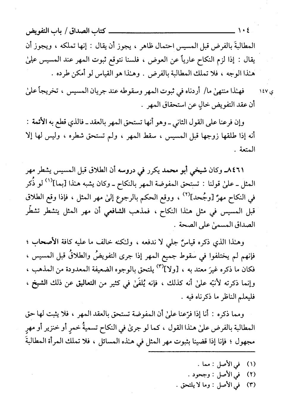 وهذا الذي ذكره قياسٌ جلي لا ندفعه، ولكنه خالف ما عليه كافة الأصحاب؛ فإنهم لم يختلفوا في سقوط جميع المهر إذا جرى التفويضُ والطلاقُ قبل المسيس، فكان ما ذكره غيرَ معتد به، [ولا] (3) يلتحق بالوجوه الضعيفة المعدودة من المذهب، وإنما ذكرته لأنبّه على أنه كذلك، فإنه يُلفَى في كثير من التعاليق عن ذلك الشيخ، فليعلم الناظر ما ذكرناه فيه.