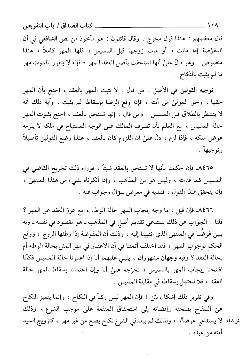 8466 - فإن قيل: ما وجه إيجاب المهر حالة الوطء، مع عروّ العقد عن المهر؟ قلنا: الجواب عن ذلك يستدعي تقديم أصلٍ في المذهب -هو مقصود في نفسه- وبه يبين غرضُنا في المنتهى الذي انتهينا إليه، وذلك أن المفوضة إذا وطئها الزوج، ووقع الحكم بوجوب المهر، فقد اختلف أئمتنا في أن الاعتبار في مهر المثل بحالة الوطء أم بحالة العقد؟ وفيه وجهان مشهوران، ينبني عليهما أنا إذا اعتبرنا حالة المسيس فكأنا افتتحنا إيجاب المهر بالمسيس، نخرّجه على أنا وإن احتملنا إسقاط المهر حالة العقد، فلا نحتمل إسقاطه في مقابلة المسيس.