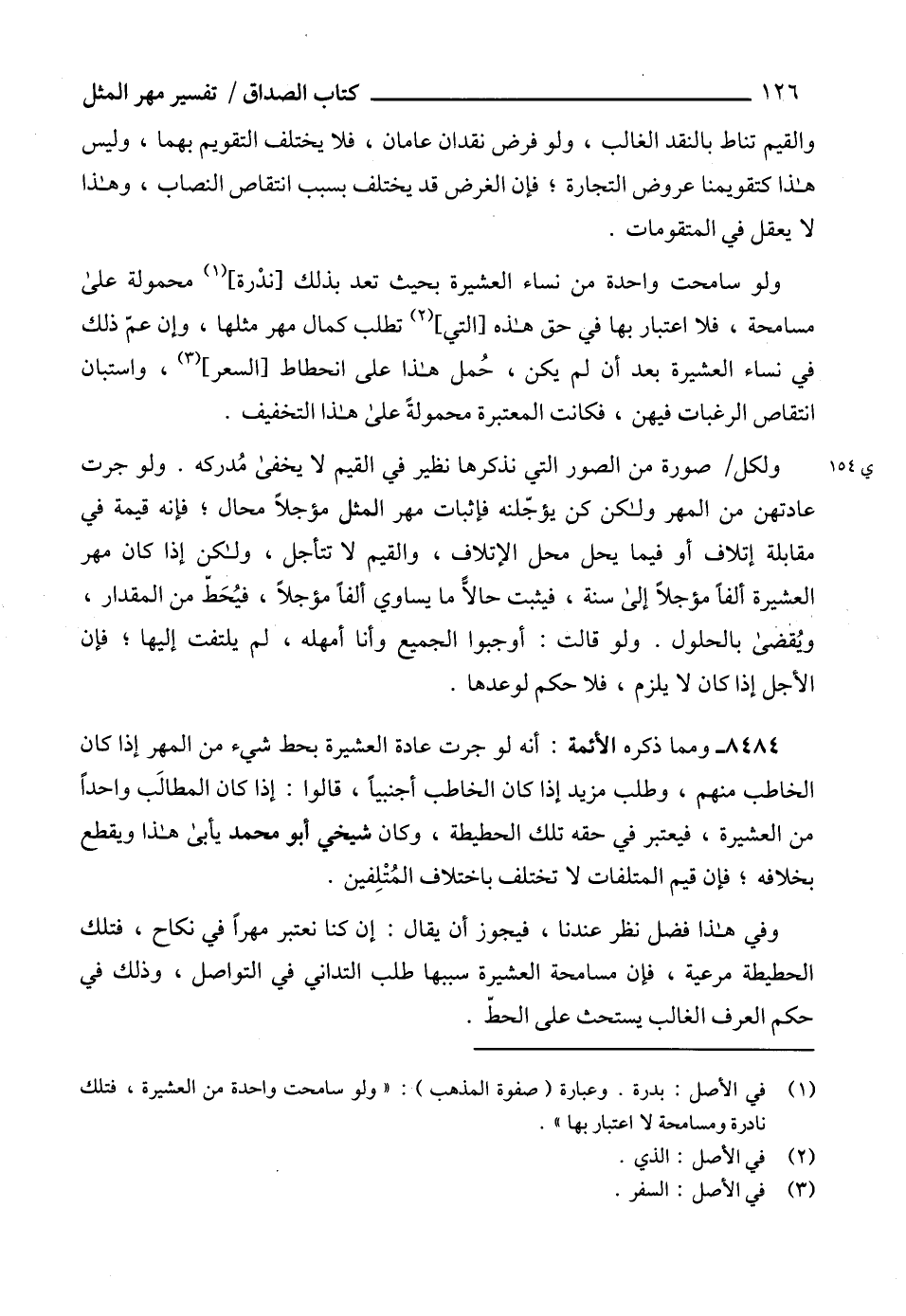 8484 - ومما ذكره الأئمة: أنه لو جرت عادة العشيرة بحط شيء من المهر إذا كان الخاطب منهم، وطلب مزيد إذا كان الخاطب أجنبياً، قالوا: إذا كان المطالَب واحداً من العشيرة، فيعتبر في حقه تلك الحطيطة، وكان شيخي أبو محمد يأبى هذا ويقطع بخلافه؛ فإن قيم المتلفات لا تختلف باختلاف المُتْلِفين.