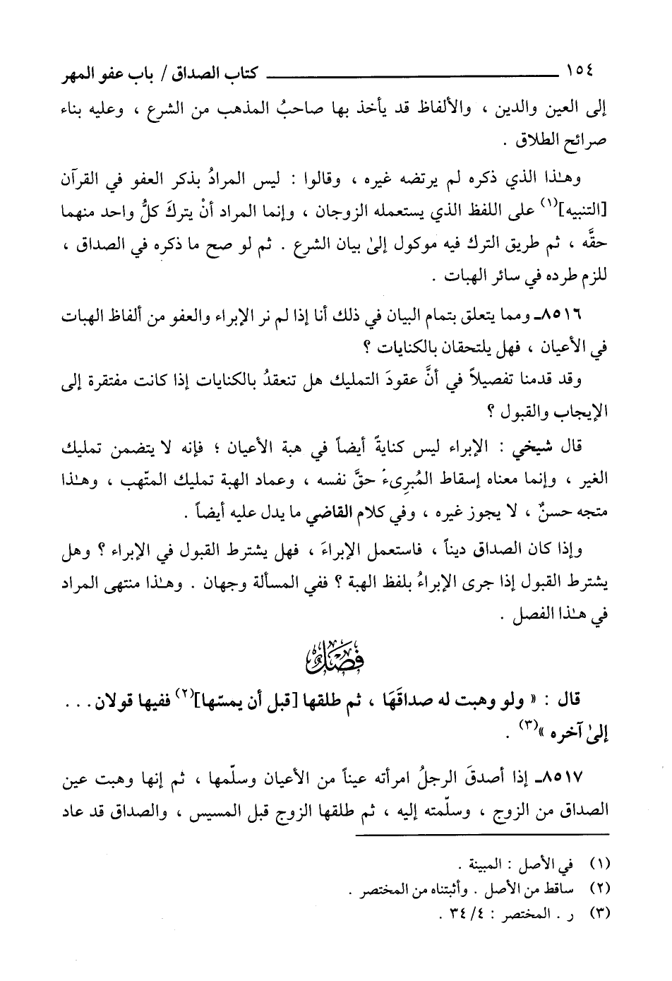 8516 - ومما يتعلق بتمام البيان في ذلك أنا إذا لم نر الإبراء والعفو من ألفاظ الهبات في الأعيان، فهل يلتحقان بالكنايات؟