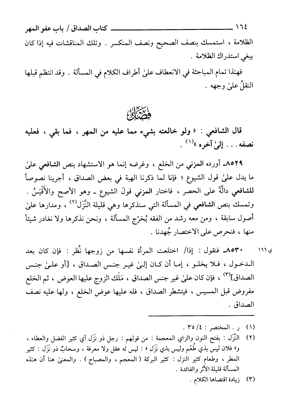 (2) النَّزَل: بفتح النون والزاي المعجمة: من قولهم: رجل ذو نَزَل أي كثير الفضل والعطاء، و" فلان ليس بذي طُعْم وليس بذي نَزَل ": ليس له عقل ولا معرفة، وسحابٌ ذو نَزَل: كثير المطر، وطعام كثير النزل: كثير البركة (المعجم، والمصباح). والمعنى هنا أن هذه المسألة قليلة الأثر والفائدة.
