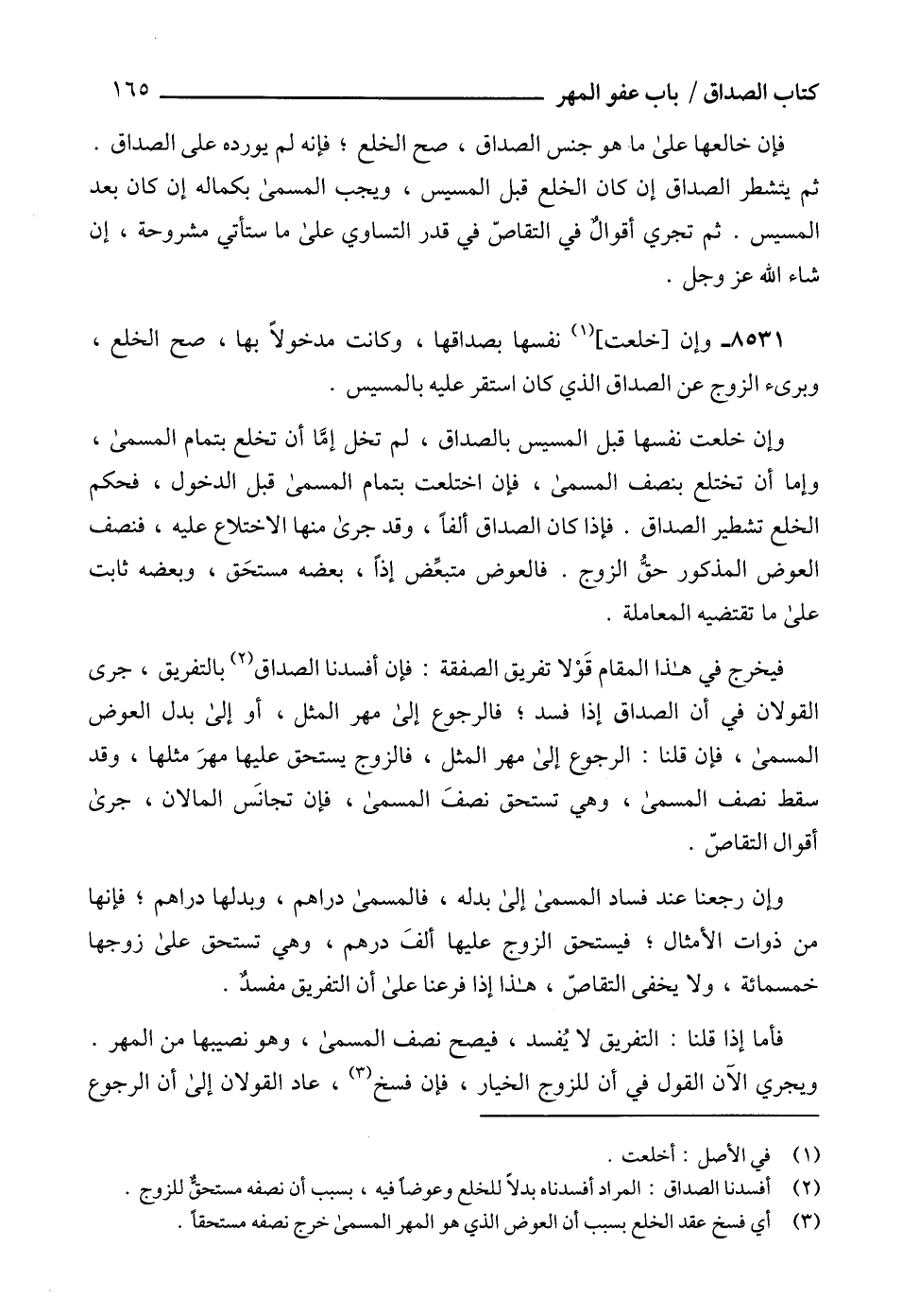 (2) أفسدنا الصداق: المراد أفسدناه بدلاً للخلع وعوضاً فيه، بسبب أن نصفه مستحقٌّ للزوج.