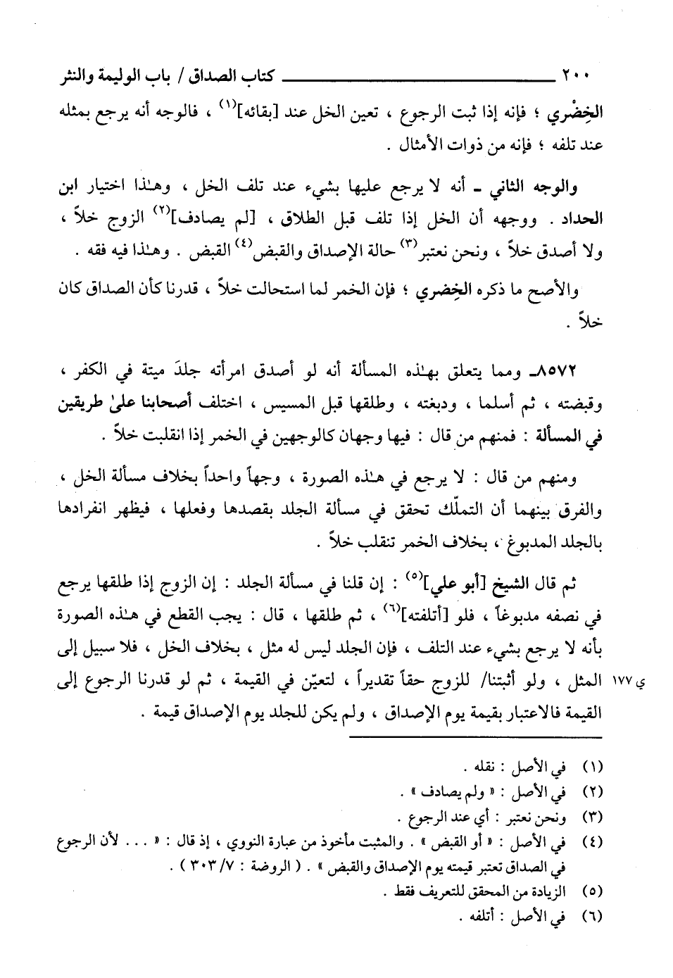 (4) في الأصل: " أو القبض ". والمثبت مأخوذ من عبارة النووي، إذ قال:" ... لأن الرجوع في الصداق تعتبر قيمته يوم الإصداق والقبض". (الروضة: 7/ 303).