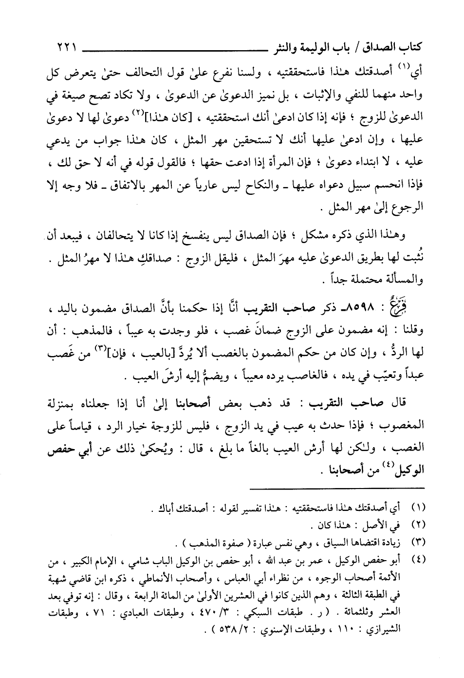 (4) أبو حفص الوكيل، عمر بن عبد الله، أبو حفص بن الوكيل الباب شامي، الإمام الكبير، من الأئمة أصحاب الوجوه، من نظراء أبي العباس، وأصحاب الأنماطي، ذكره ابن قاضي شهبة في الطبقة الثالثة، وهم الذين كانوا في العشرين الأولى من المائة الرابعة، وقال: إنه توفي بعد العشر وثلثمائة. (ر. طبقات السبكي: 3/ 470، وطبقات العبادي: 71، وطبقات الشيرازي: 110، وطبقات الإسنوي: 2/ 538).