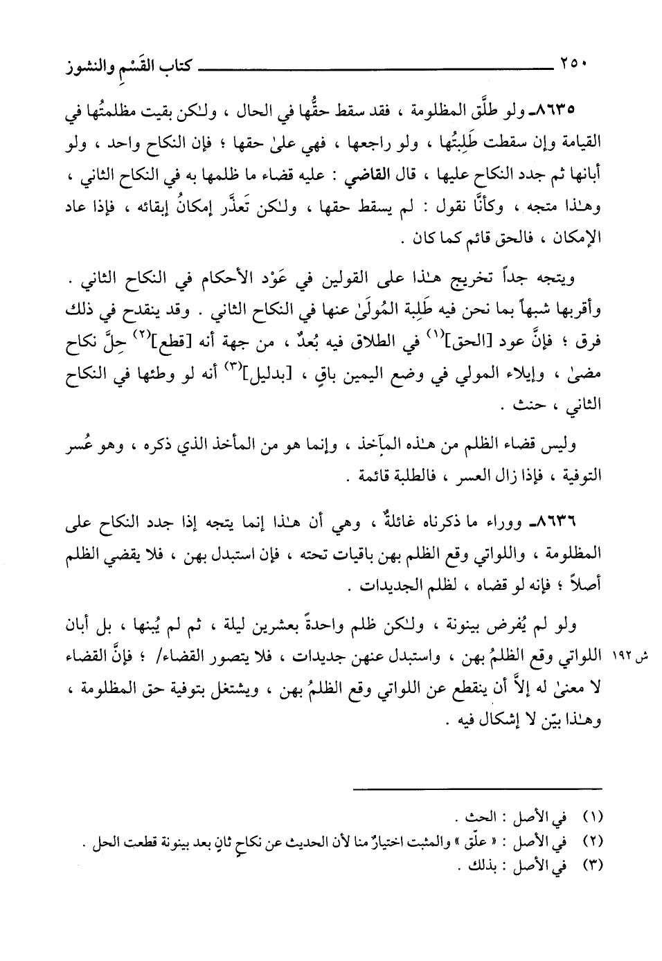 8636 - ووراء ما ذكرناه غائلةٌ، وهي أن هذا إنما يتجه إذا جدد النكاح على المظلومة، واللواتي وقع الظلم بهن باقيات تحته، فإن استبدل بهن، فلا يقضي الظلم أصلاً؛ فإنه لو قضاه، لظلم الجديدات.