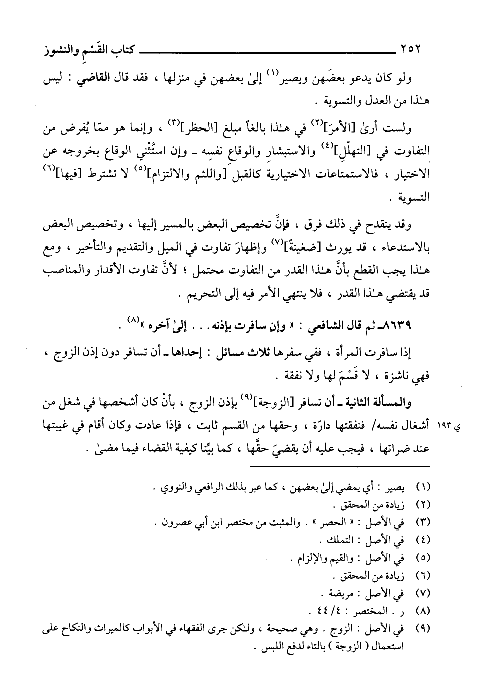 (9) في الأصل: الزوج. وهي صحيحة، ولكن جرى الفقهاء في الأبواب كالميراث والنكاح على استعمال (الزوجة) بالتاء لدفع اللبس.