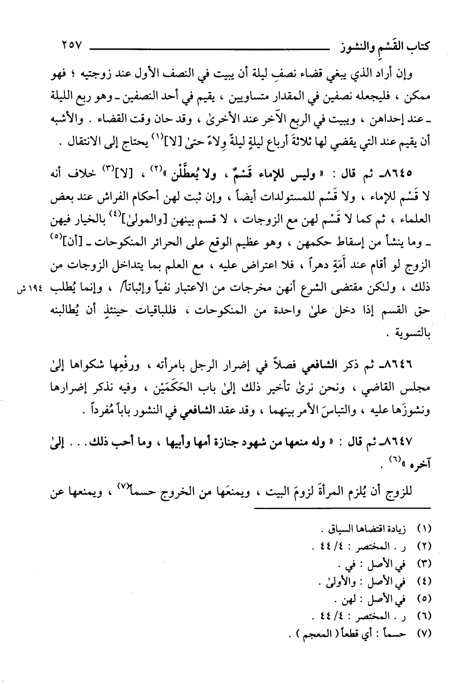 8646 - ثم ذكر الشافعي فصلاً في إضرار الرجل بامرأته، ورفْعِها شكواها إلى مجلس القاضي، ونحن نرى تأخير ذلك إلى باب الحَكَمَيْن، وفيه نذكر إضرارها ونشوزَها عليه، والتباسَ الأمر بينهما، وقد عقد الشافعي في النشور باباً مُفرداً.