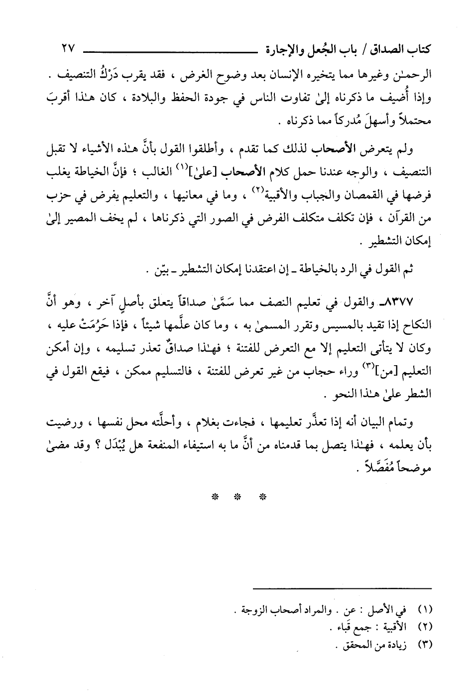 (1) في الأصل: عن. والمراد أصحاب الزوجة.