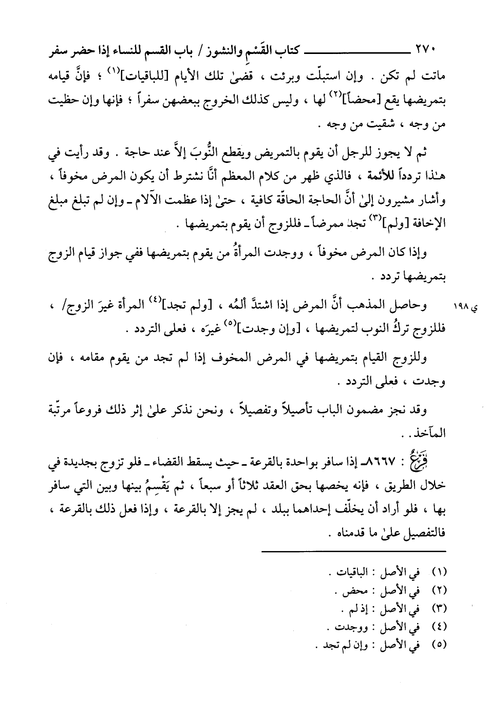 ماتت لم تكن. وإن استبلّت وبرئت، قضى تلك الأيام [للباقيات] (1)؛ فإنَّ قيامه بتمريضها يقع [محضاً] (2) لها، وليس كذلك الخروج ببعضهن سفراً؛ فإنها وإن حظيت من وجه، شقيت من وجه.