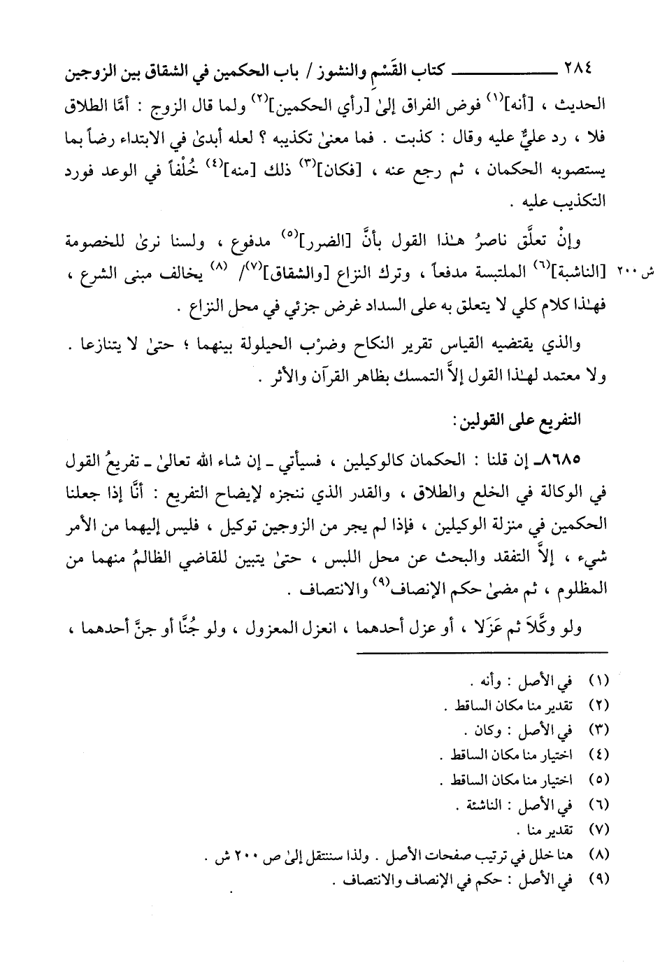 (8) هنا خلل في ترتيب صفحات الأصل. ولذا سننتفل إلى ص 200 ش.