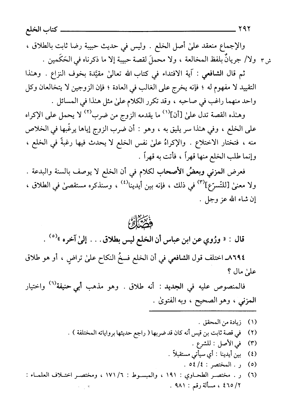 (6) ر. مختصر الطحاوي: 191، والمبسوط: 6/ 171، ومختصر اختلاف العلماء: 2/ 465، مسألة رقم: 981.