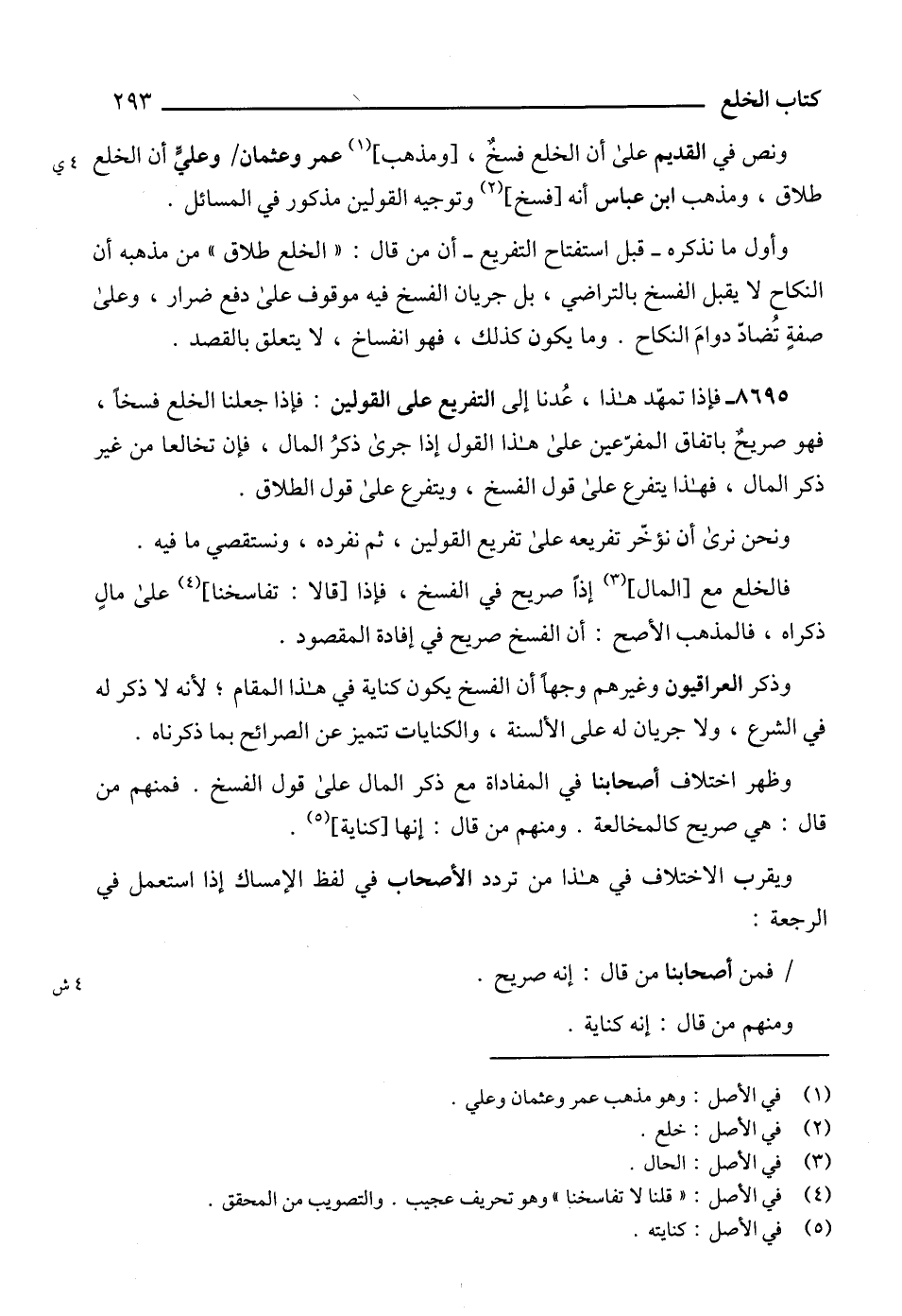 ونص في القديم على أن الخلع فسخٌ، [ومذهب] (1) عمر وعثمان وعليٍّ أن الخلع طلاق، ومذهب ابن عباس أنه [فسخ] (2) وتوجيه القولين مذكور في المسائل.