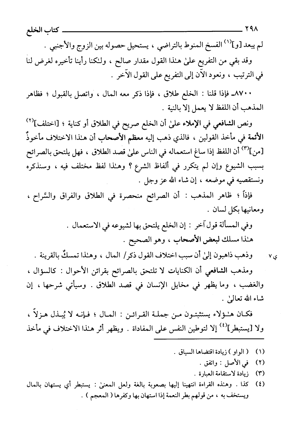 8700 - فإذا قلنا: الخلع طلاق، فإذا ذكر معه المال، واتصل بالقبول؛ فظاهر المذهب أن اللفظ لا يعمل إلا بالنية.