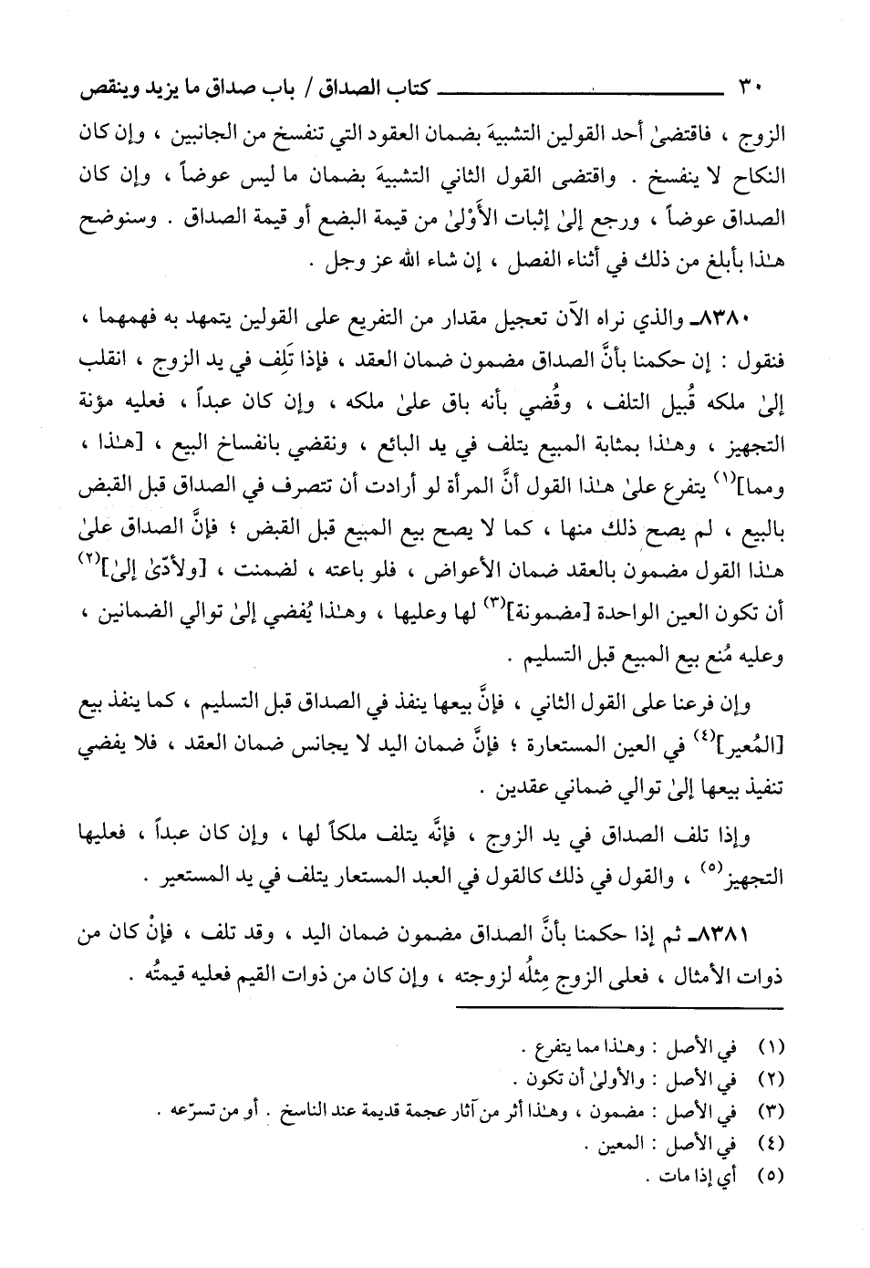 8381 - ثم إذا حكمنا بأنَّ الصداق مضمون ضمان اليد، وقد تلف، فإنْ كان من ذوات الأمثال، فعلى الزوج مِثلُه لزوجته، وإن كان من ذوات القيم فعليه قيمتُه.