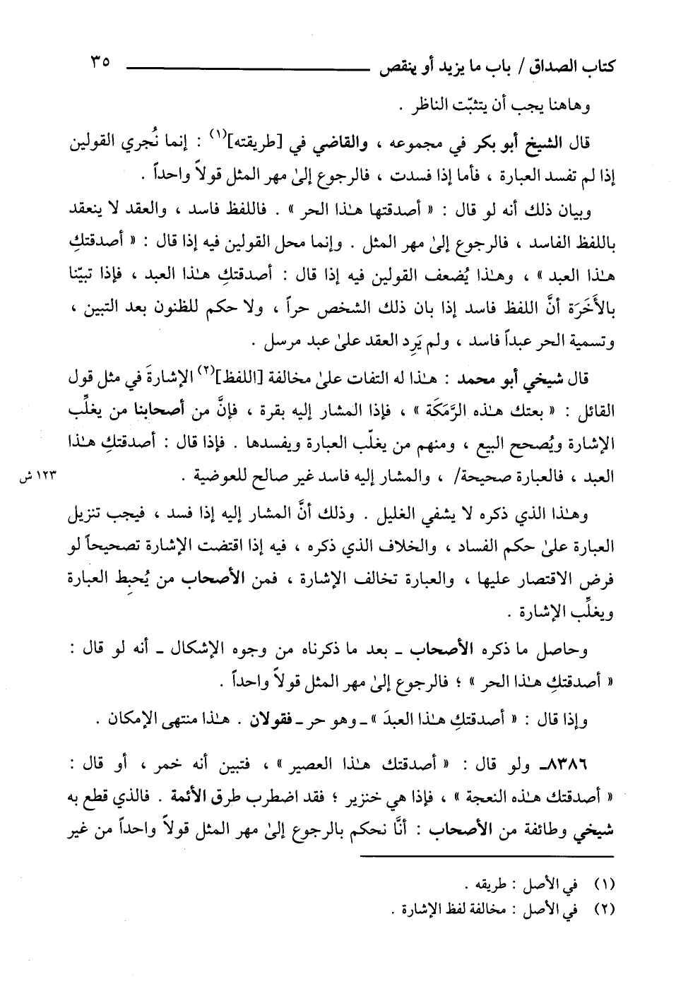 وإذا قال: " أصدقتكِ هذا العبدَ " -وهو حر- فقولان. هذا منتهى الإمكان.