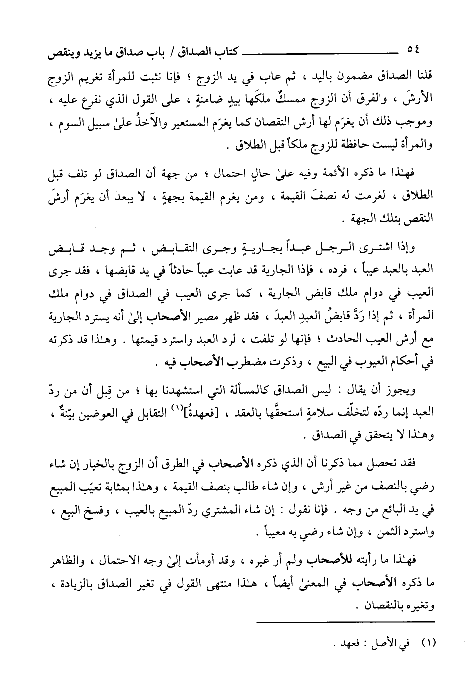 فهذا ما رأيته للأصحاب ولم أر غيره، وقد أومأت إلى وجه الاحتمال، والظاهر ما ذكره الأصحاب في المعنى أيضاً، هذا منتهى القول في تغير الصداق بالزيادة، وتغيره بالنقصان.
