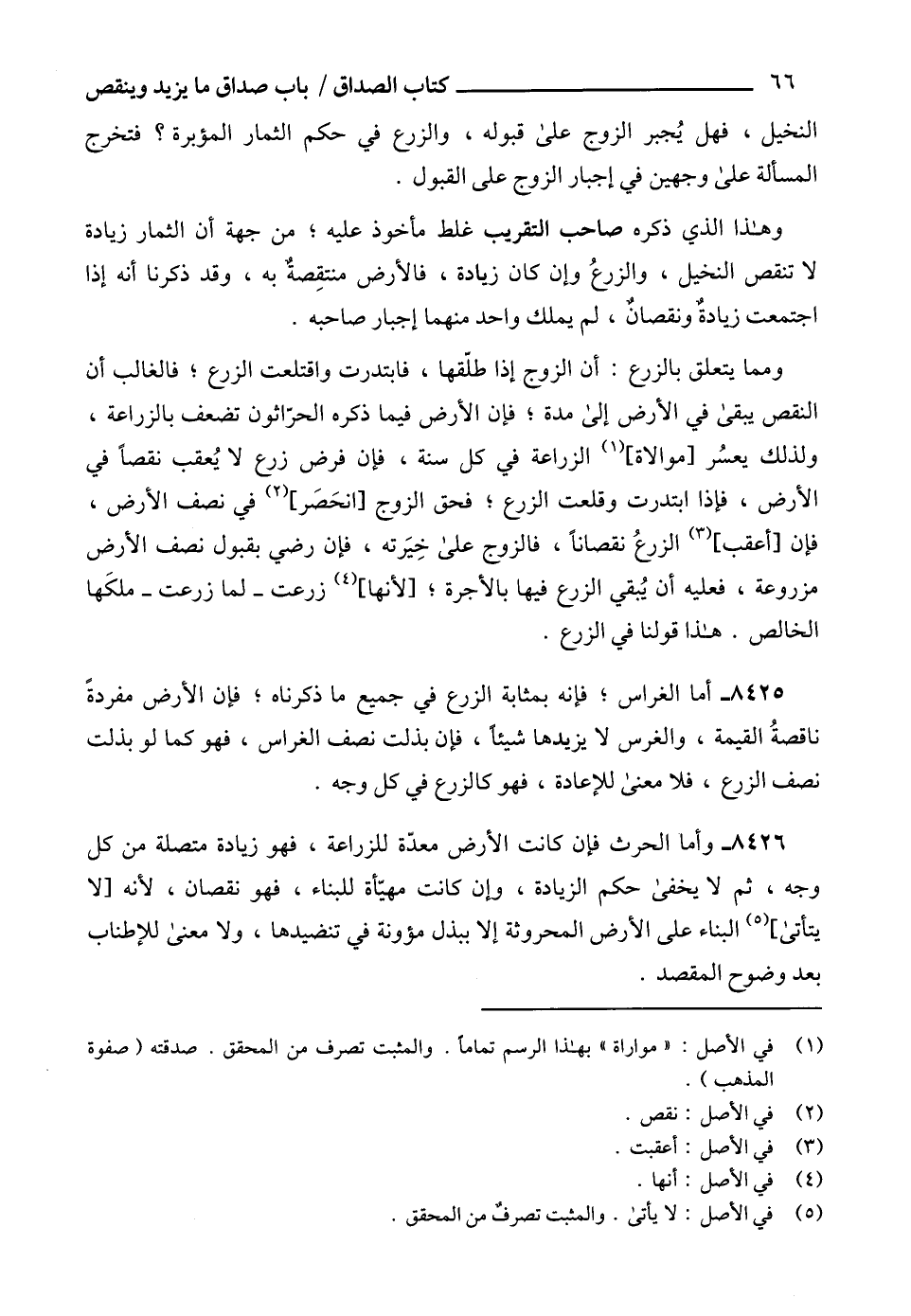 8426 - وأما الحرث فإن كانت الأرض معدّة للزراعة، فهو زيادة متصلة من كل وجه، ثم لا يخفى حكم الزيادة، وإن كانت مهيّأة للبناء، فهو نقصان، لأنه [لا يتأتى] (5) البناء على الأرض المحروثة إلا ببذل مؤونة في تنضيدها، ولا معنى للإطناب بعد وضوح المقصد.