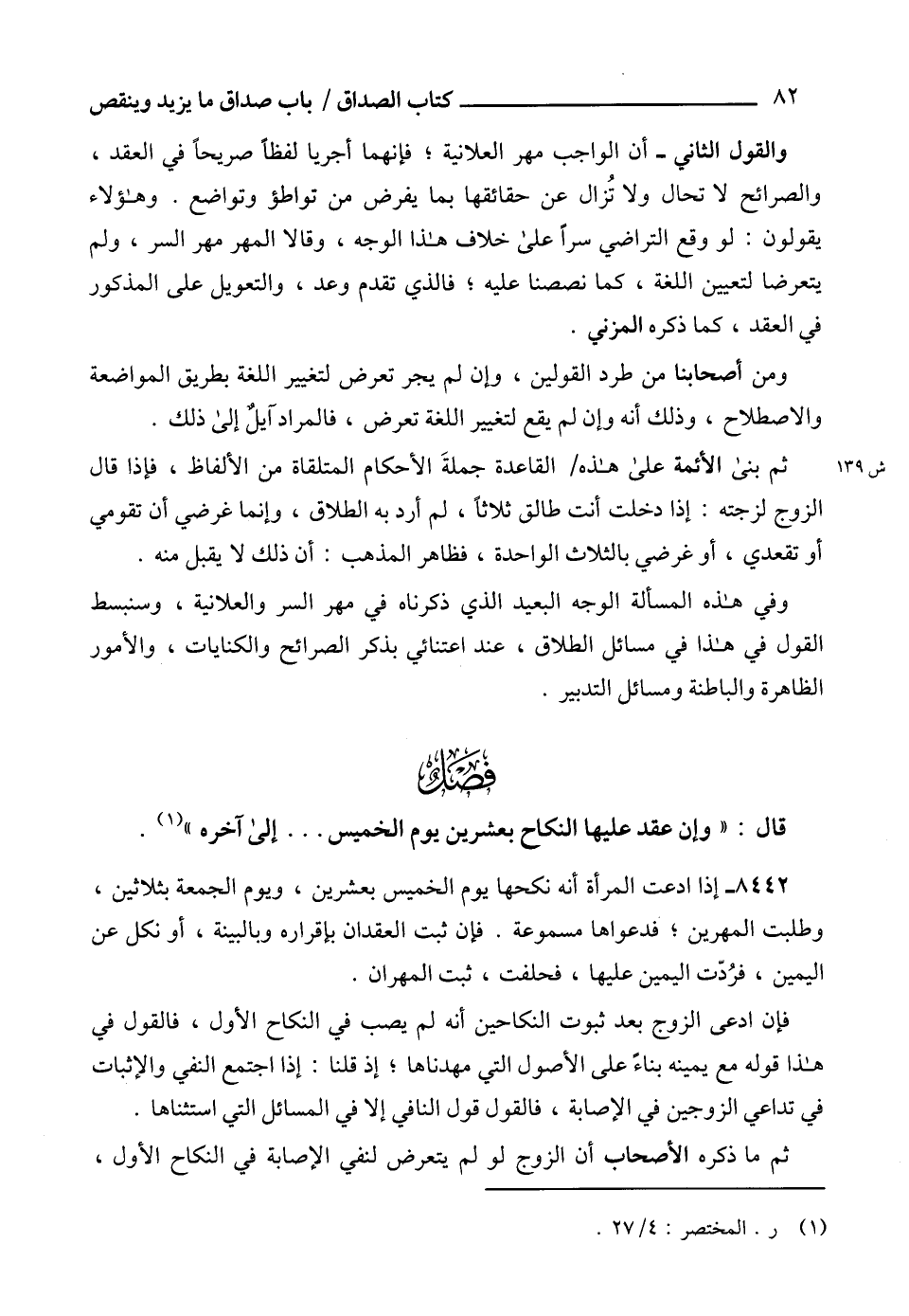 وفي هذه المسألة الوجه البعيد الذي ذكرناه في مهر السر والعلانية، وسنبسط القول في هذا في مسائل الطلاق، عند اعتنائي بذكر الصرائح والكنايات، والأمور الظاهرة والباطنة ومسائل التدبير.