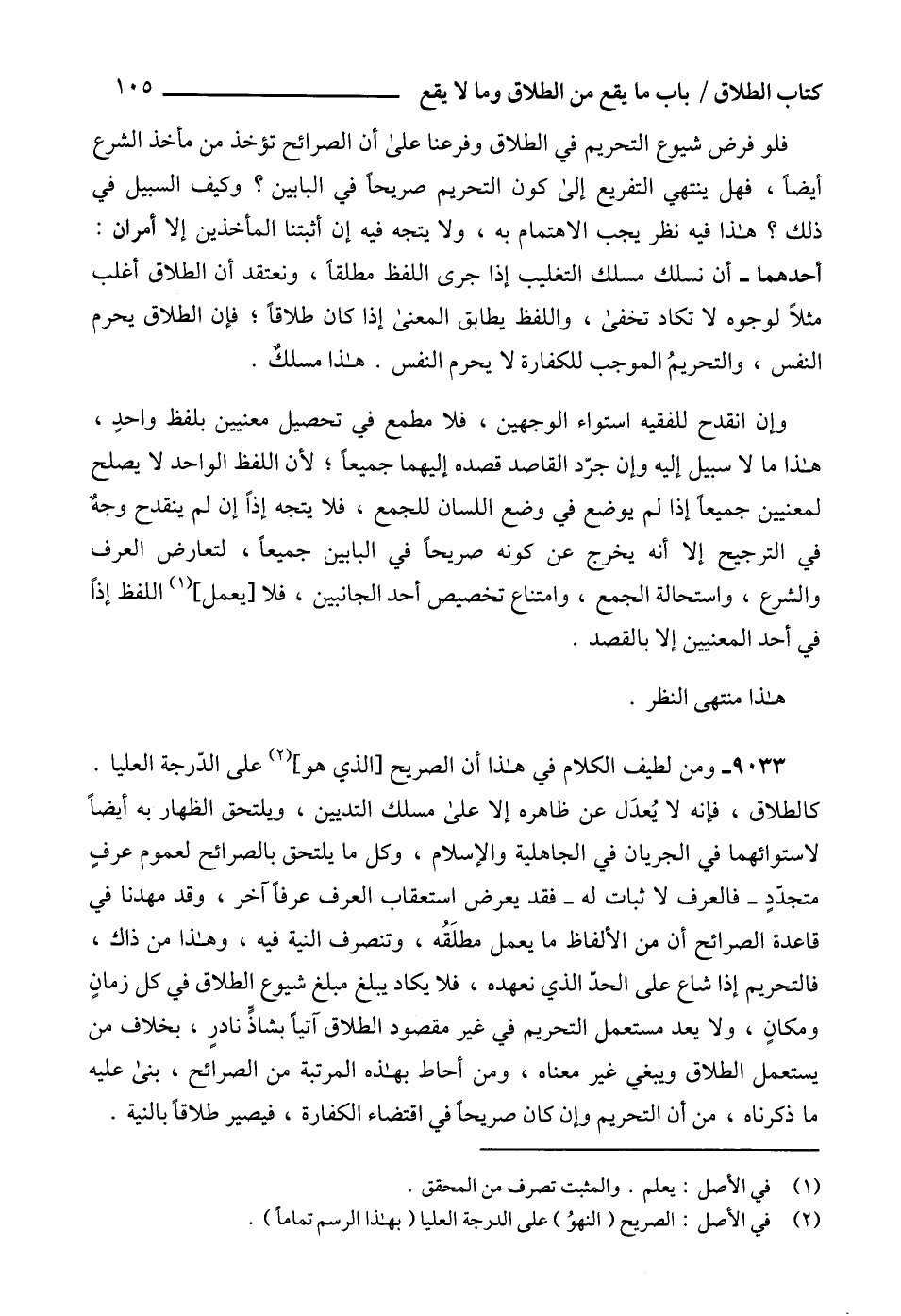 9033 - ومن لطيف الكلام في هذا أن الصريح [الذي هو] (2) على الدّرجة العليا.