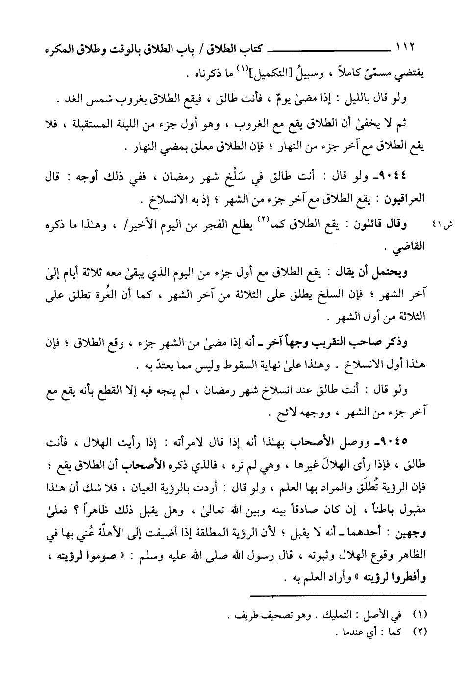 9044 - ولو قال: أنت طالق في سَلْخ شهر رمضان، ففي ذلك أوجه: قال العراقيون: يقع الطلاق مع آخر جزء من الشهر؛ إذ به الانسلاخ.
