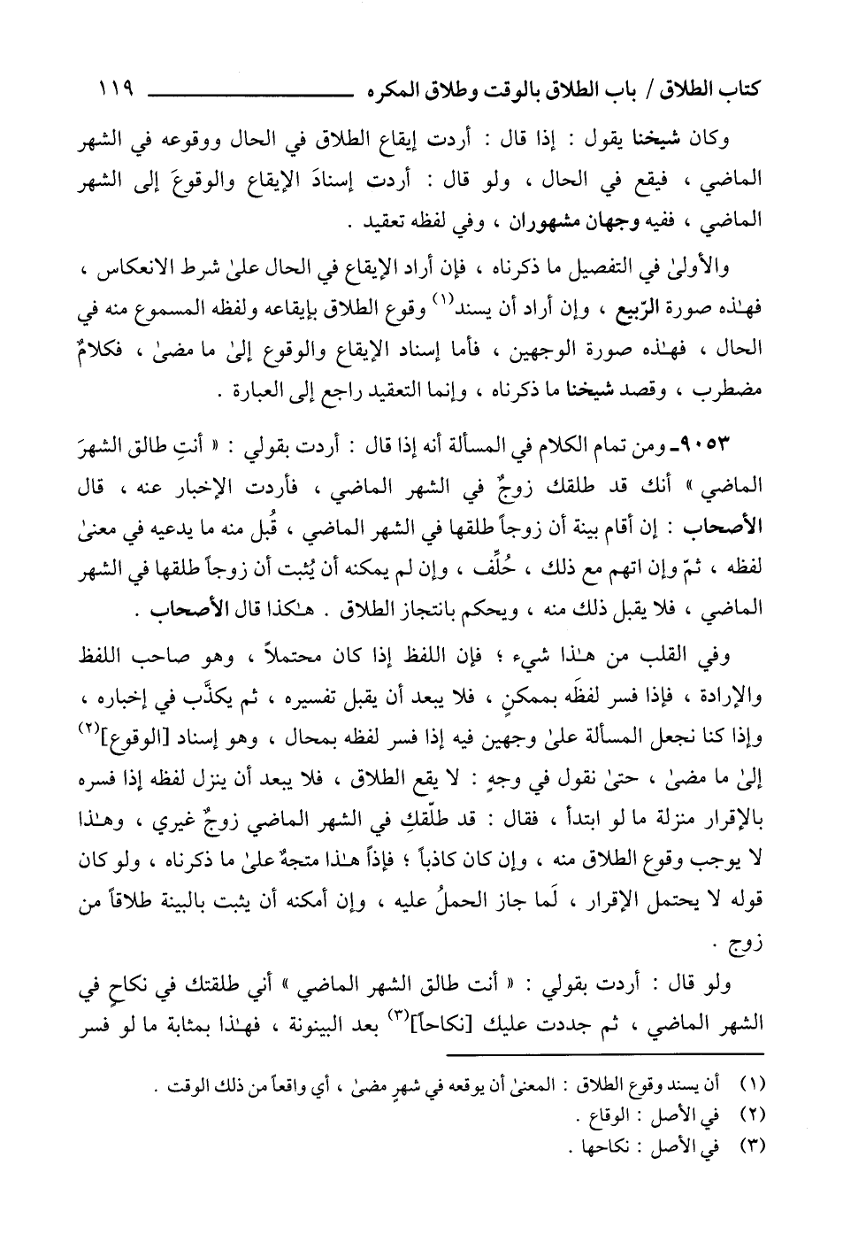 (1) أن يسند وقوع الطلاق: المعنى أن يوقعه في شهرٍ مضى، أي واقعاً من ذلك الوقت.