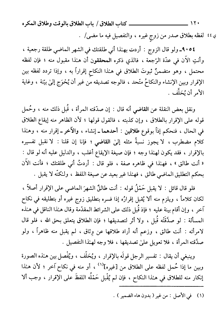 وينبغي أن يقال: تفسير الرجل قولَه بالإقرار، ويُحَلّف، ويُفْصل بين هذه الصورة وبين ما إذا حُمل لفظه على الطلاق من [غيره] (1)، أو منه في نكاح آخر؛ لأن هذا إنكار منه للطلاق في هذا النكاح، فإن لم يُقْبل حَمْلُه اللفظَ على الإقرار، وجب ألا