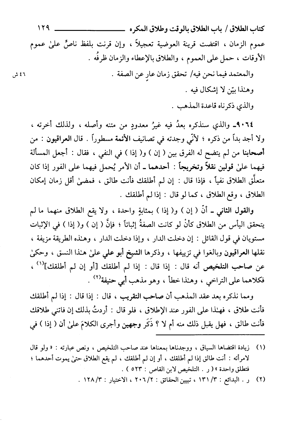 (2) ر. البدائع: 3/ 131، تبيين الحقائق: 2/ 206، الاختيار: 3/ 128.