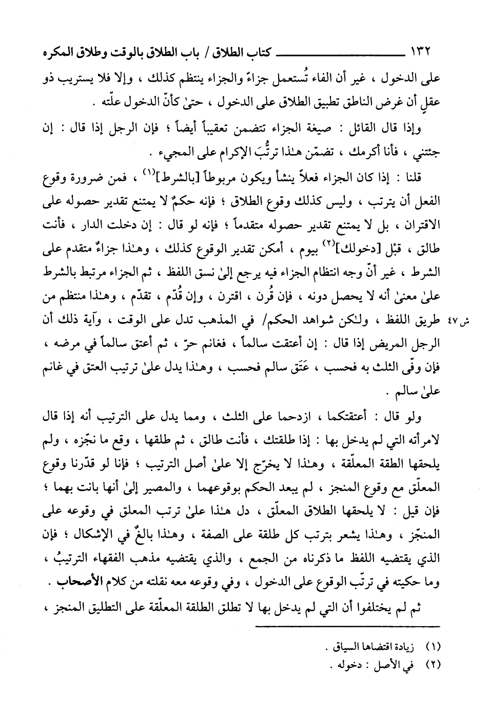 على الدخول، غير أن الفاء تُستعمل جزاءً والجزاء ينتظم كذلك، وإلا فلا يستريب ذو عقلٍ أن غرض الناطق تطبيق الطلاق على الدخول، حتى كأنّ الدخول علّته.