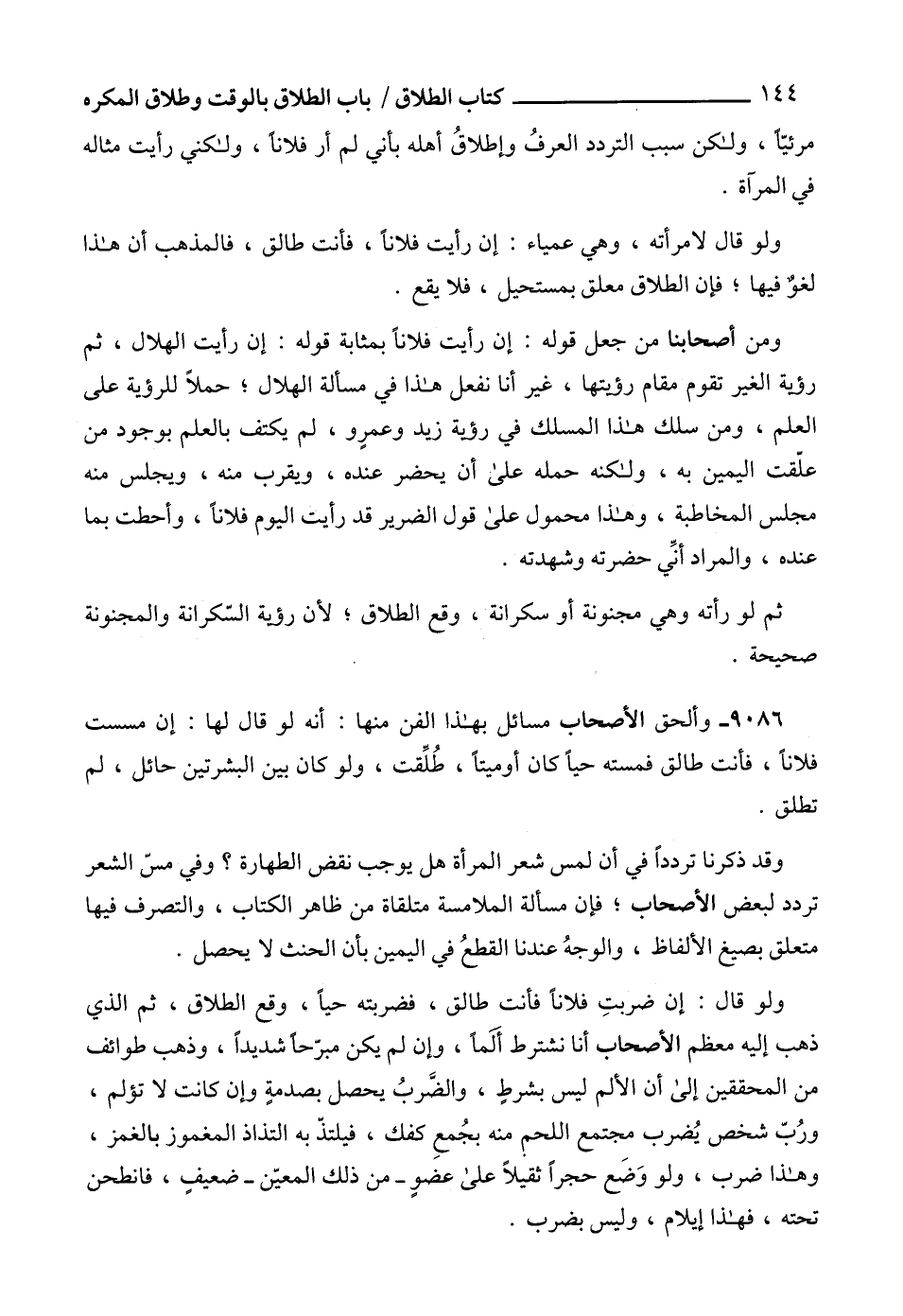 9086 - وألحق الأصحاب مسائل بهذا الفن منها: أنه لو قال لها: إن مسست فلاناً، فأنت طالق فمسته حياً كان أوميتاً، طُلِّقت، ولو كان بين البشرتين حائل، لم تطلق.