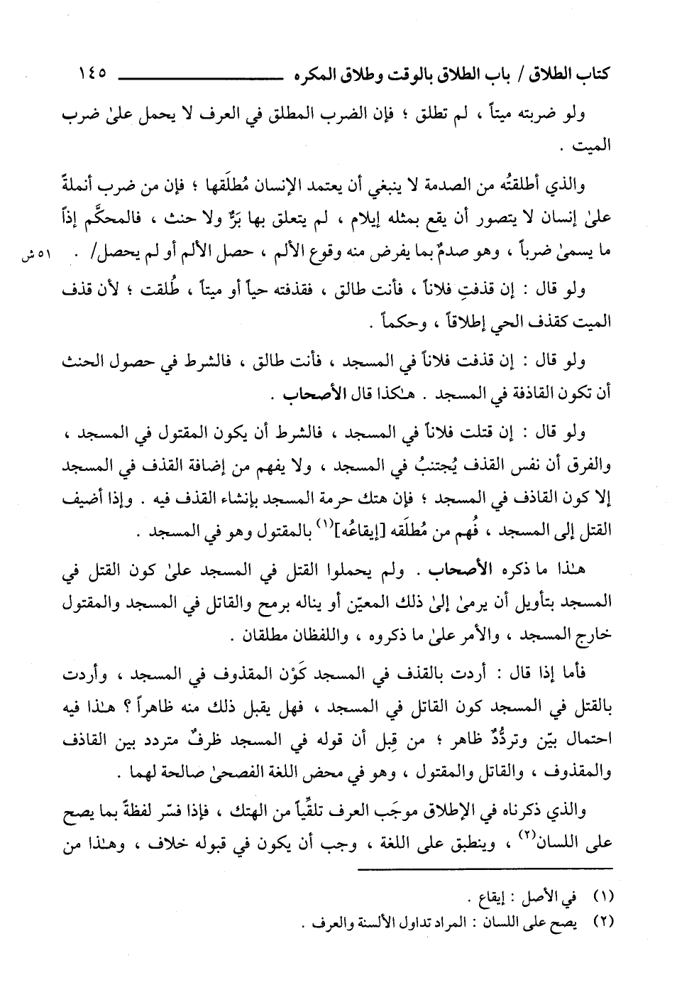فأما إذا قال: أردت بالقذف في المسجد كَوْن المقذوف في المسجد، وأردت بالقتل في المسجد كون القاتل في المسجد، فهل يقبل ذلك منه ظاهراً؟ هذا فيه احتمال بيّن وتردُّدٌ ظاهر؛ من قِبل أن قوله في المسجد ظرفٌ متردد بين القاذف والمقذوف، والقاتل والمقتول، وهو في محض اللغة الفصحى صالحة لهما.