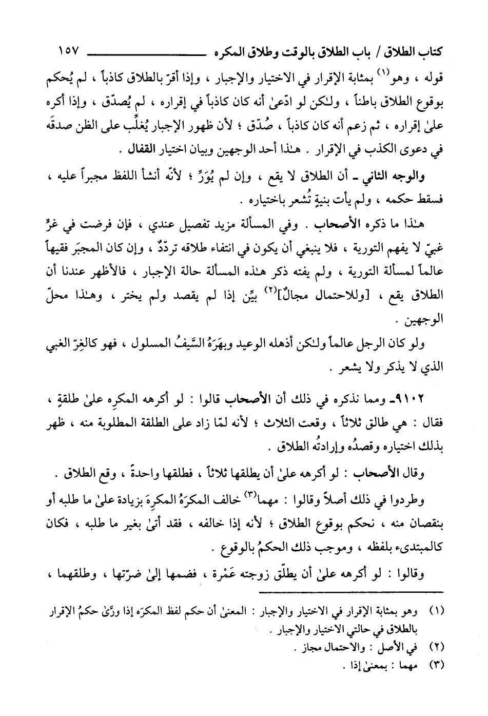 9102 - ومما نذكره في ذلك أن الأصحاب قالوا: لو أكرهه المكرِه على طلقةٍ، فقال: هي طالق ثلاثاًً، وقعت الثلاث؛ لأنه لمّا زاد على الطلقة المطلوبة منه، ظهر بذلك اختياره وقصدُه وإرادتُه الطلاق.