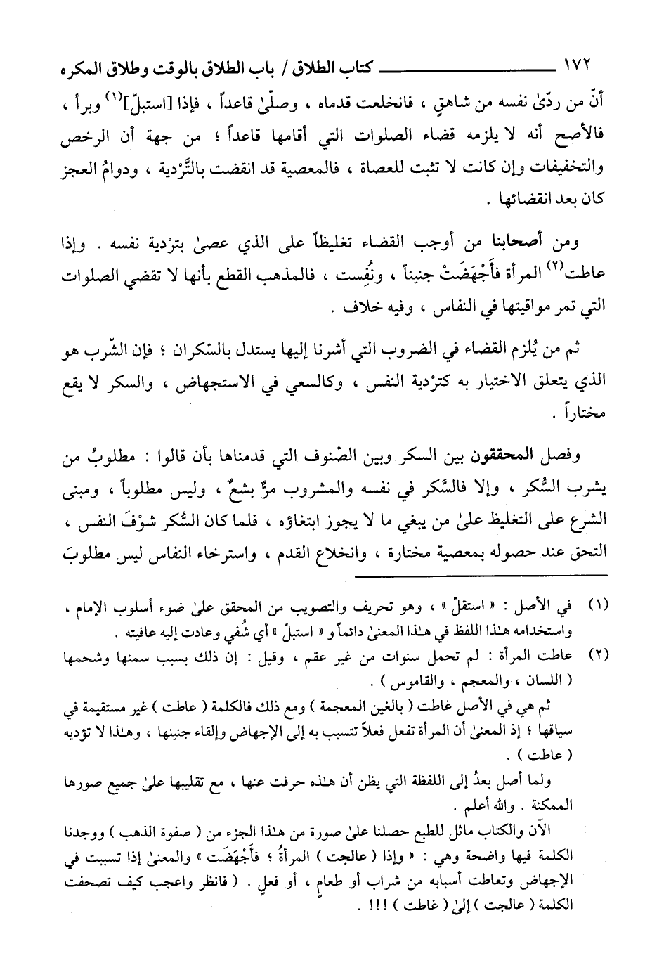 الآن والكتاب ماثل للطبع حصلنا على صورة من هذا الجزء من (صفوة الذهب) ووجدنا الكلمة فيها واضحة وهي: "وإذا (عالجت) المرأةُ؛ فأَجْهَضَت" والمعنى إذا تسببت في الإجهاض وتعاطت أسبابه من شراب أو طعامٍ، أو فعلٍ. (فانظر واعجب كيف تصحفت الكلمة (عالجت) إلى (غاطت)!!!.