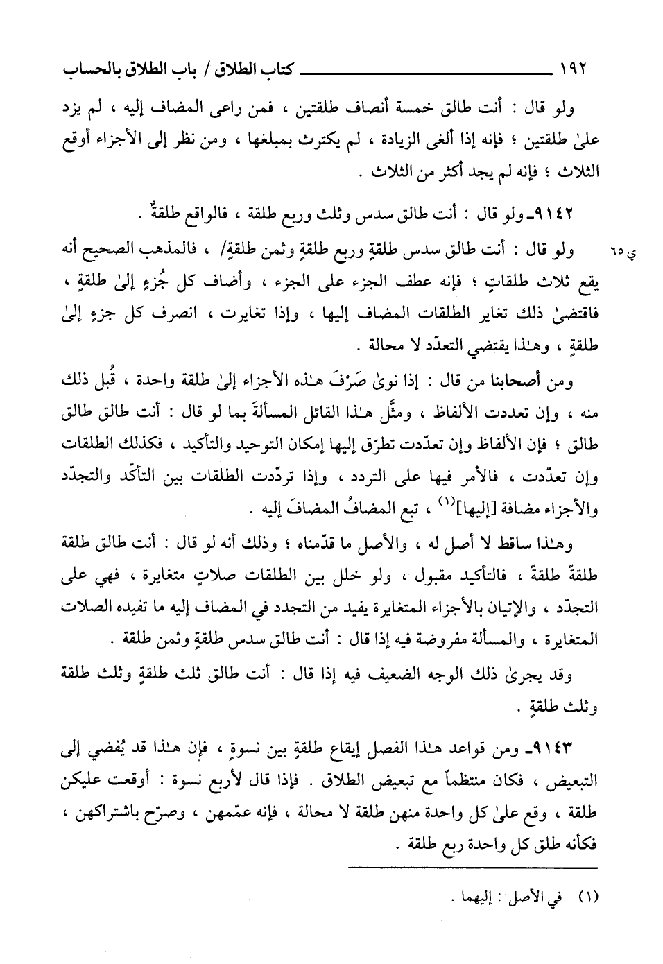 9142 - ولو قال: أنت طالق سدس وثلث وربع طلقة، فالواقع طلقةٌ.