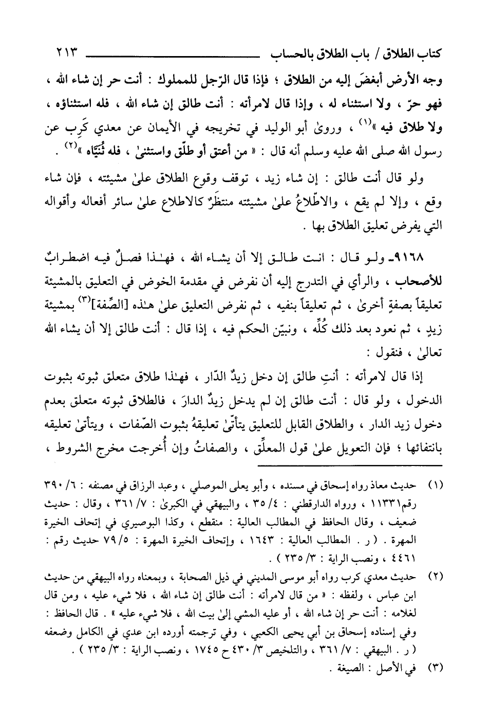 9168 - ولو قال: انت طالق إلا أن يشاء الله، فهذا فصلٌ فيه اضطرابٌ للأصحاب، والرأي في التدرج إليه أن نفرض في مقدمة الخوض في التعليق بالمشيئة تعليقاً بصفةٍ أخرى، ثم تعليقاً بنفيه، ثم نفرض التعليق على هذه [الصِّفة] (3) بمشيئة زيدٍ، ثم نعود بعد ذلك كُلِّه، ونبيّن الحكم فيه، إذا قال: أنت طالق إلا أن يشاء الله تعالى، فنقول: