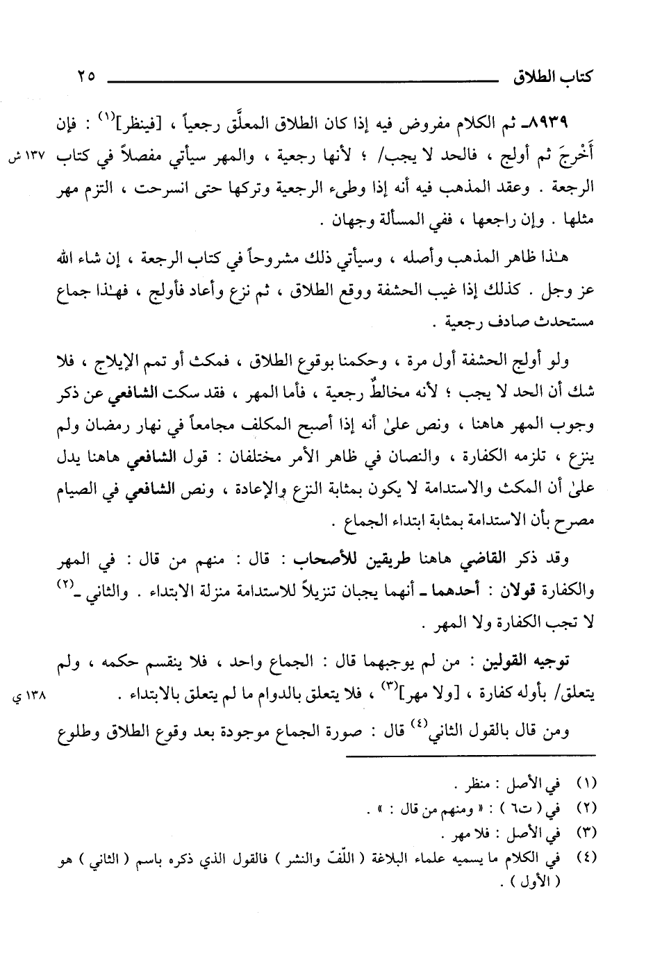 8939 - ثم الكلام مفروض فيه إذا كان الطلاق المعلَّق رجعياً، [فينظر] (1): فإن أَخْرجَ ثم أولج، فالحد لا يجب؛ لأنها رجعية، والمهر سيأتي مفصلاً في كتاب الرجعة. وعقد المذهب فيه أنه إذا وطىء الرجعية وتركها حتى انسرحت، التزم مهر مثلها. وإن راجعها، ففي المسالة وجهان.