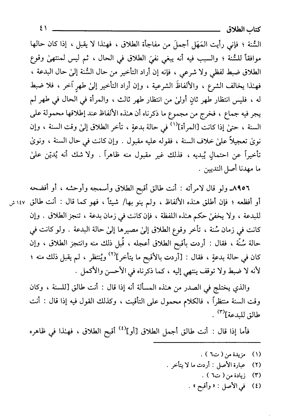 السّنة؛ فإني رأيت المَهَل أجملَ من مفاجأة الطلاق، فهذا لا يقبل، إذا كان حالها موافقاً للسُّنة؛ والسبب فيه أنه يبغي نفيَ الطلاق في الحال، ثم ليس لمنتهى وقوع الطلاق ضبط لفظي ولا شرعي، فإنه إن أراد التأخير من حال السُّنة إلى حال البدعة، فهذا يخالف الشرع، والألفاظَ الشرعية، وإن أراد التأخير إلى طهرٍ آخر، فلا ضبط له، فليس انتظار طهر ثانٍ أولى من انتظار طهر ثالث، والمرأة في الحال في طهر لم يجر فيه جماع، فخرج من مجموع ما ذكرناه أن هذه الألفاظ عند إطلاقها محمولة على السنة، حتى إذا كانت [المرأة] (1) في حالة بدعةٍ، تأخر الطلاق إلى وقت السنة، وإن نوى تعجيلاً على خلاف السنة، فقوله عليه مقبول. وإن كانت في حال السنة، ونوى تأخيراً عن احتمالٍ يُبديه، فذلك غير مقبول منه ظاهراً. ولا شك أنه يُديّن على ما مهدنا أصل التديين.