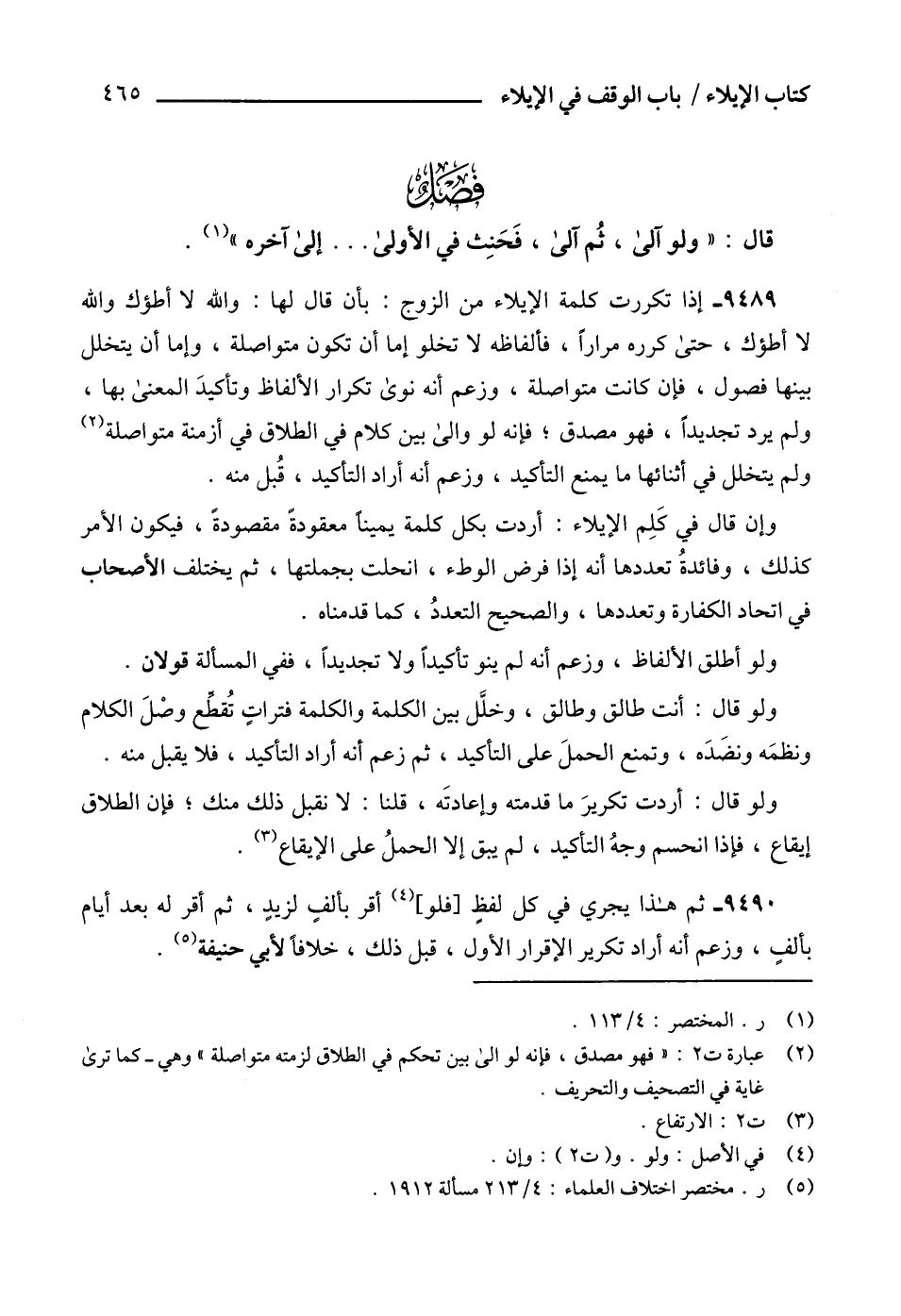 (2) عبارة ت 2: "فهو مصدق، فإنه لو الى بين تحكم في الطلاق لزمته متواصلة" وهي - كما ترى غاية في التصحيف والتحريف.