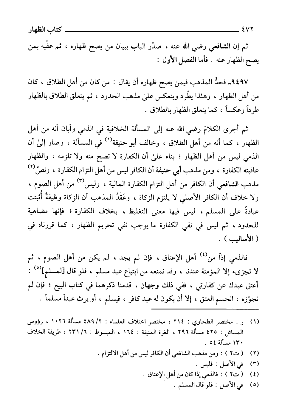(1) ر. مختصر الطحاوي: 214، مختصر اخثلاف العلماء: 2/ 489 مسألة 1026، رؤوس المسائل: 425 مسألة 296، الغرة المنيفة: 164، المبسوط: 6/ 231، طريقة الخلاف 130 مسألة 54.