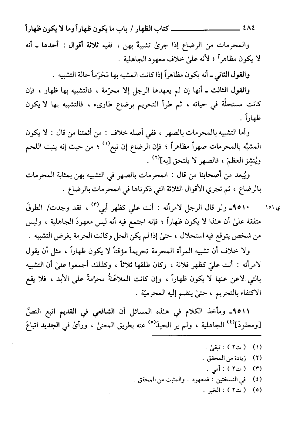 9511 - ومأخذ الكلام في هذه المسائل أن الشافعي في القديم اتبع النصَّ [ومعقودَ] (4) الجاهلية، ولم ير الحيدَ (5) عنه بطريق المعنى، ورأى في الجديد اتباعَ