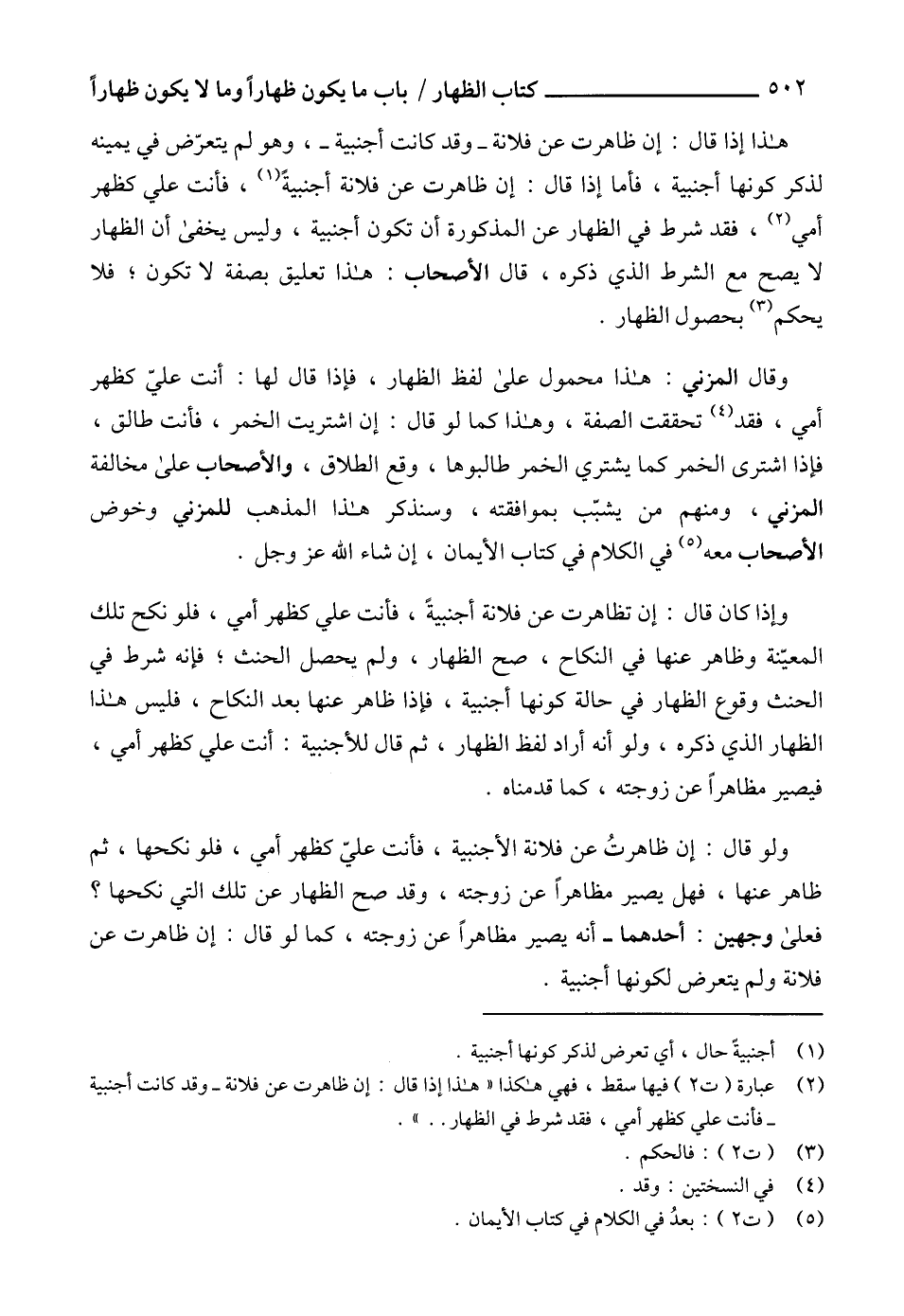 (2) عبارة (ت 2) فيها سقط، فهي هكذا "هذا إذا قال: إن ظاهرت عن فلانة -وقد كانت أجنبية - فأنت علي كظهر أمي، فقد شرط في الظهار .. ".