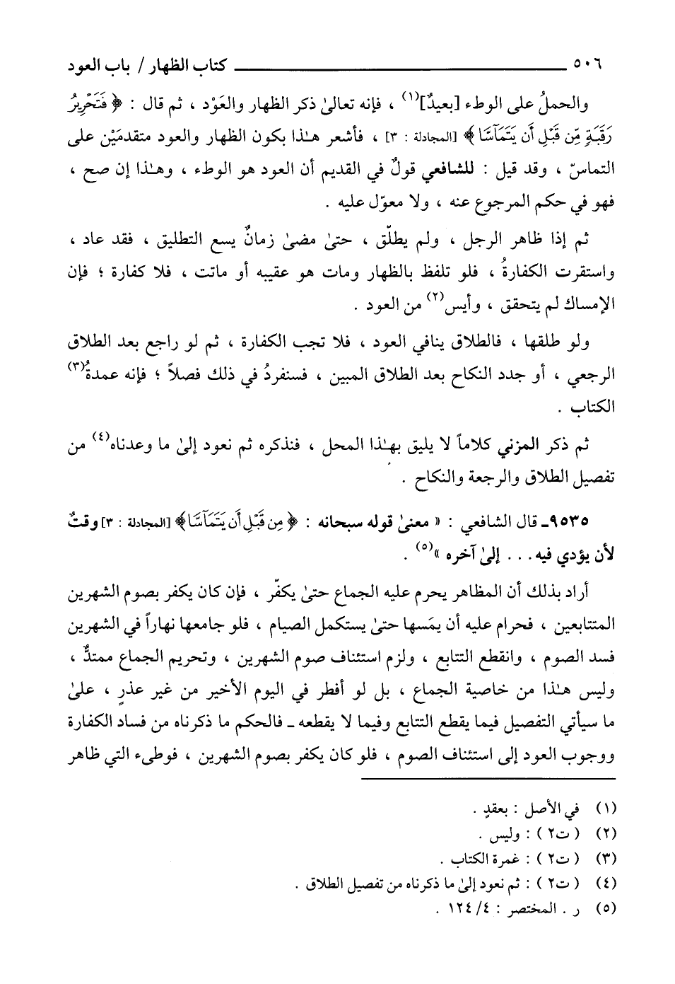 9535 - قال الشافعي: "معنى قوله سبحانه: {مِنْ قَبْلِ أَنْ يَتَمَاسَّا} [المجادلة: 3] وقتٌ لأن يؤدي فيه ... إلى آخره" (5).