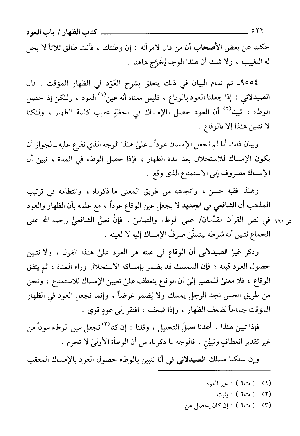 9554 - ثم تمام البيان في ذلك يتعلق بشرح العَوْد في الظهار المؤقت: قال الصيدلاني: إذا جعلنا العود بالوقاع، فليس معناه أنه عين (1) العود، ولكن إذا حصل الوطء، تبينا (2) أن العود حصل بالإمساك في لحظةٍ عقيب كلمة الظهار، ولكنا لا نتبين هذا إلا بالوقاع.