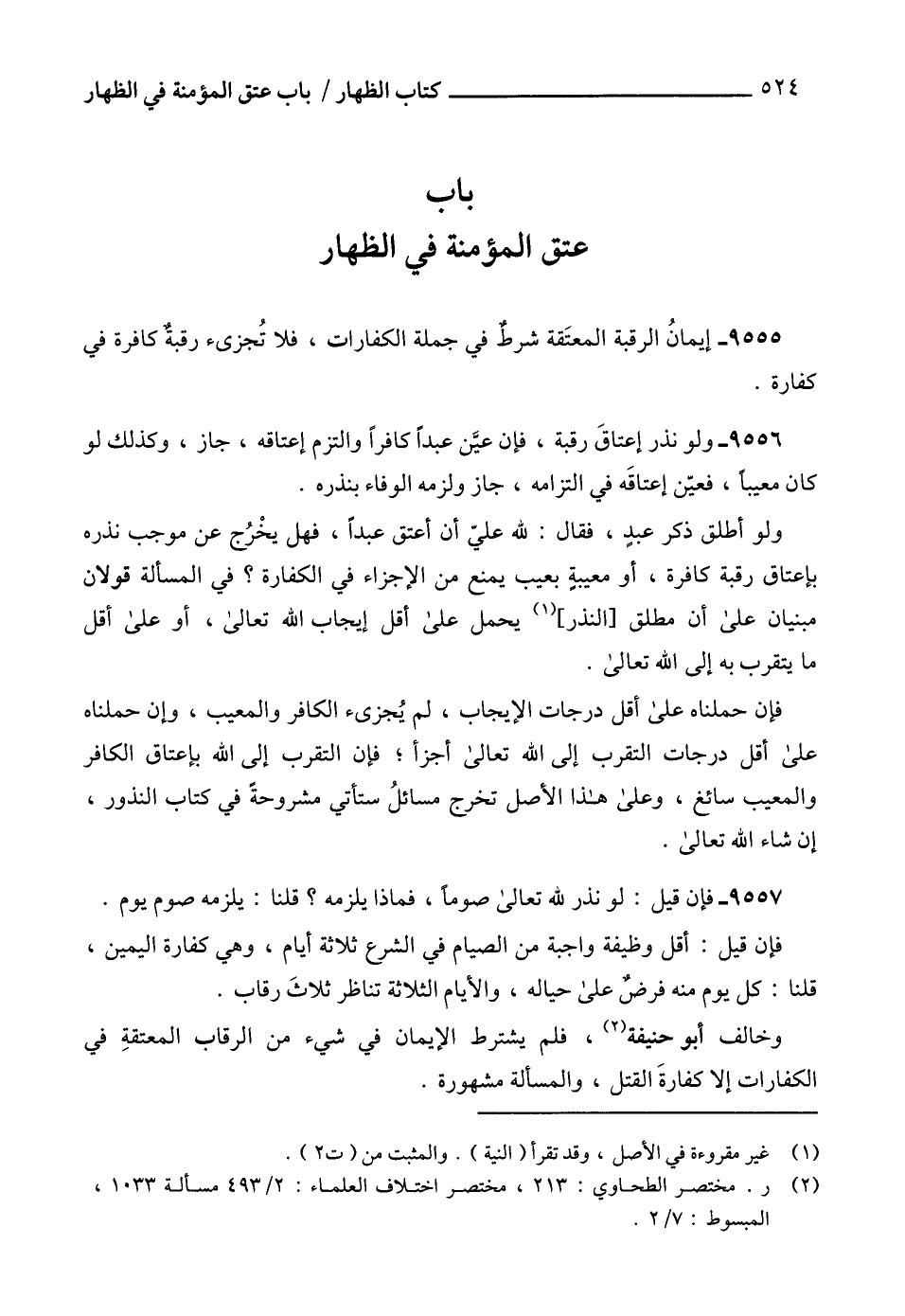 (2) ر. مختصر الطحاوي: 213، مختصر اختلاف العلماء: 2/ 493 مسألة 1033، المبسوط: 7/ 2.